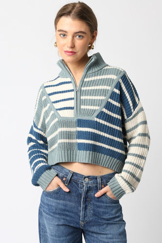 NEWEST ARRIVAL Teal/Blue Striped Quarter Zip Pullover