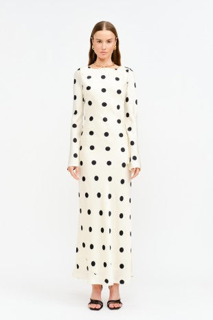 NEWEST ARRIVAL *PREORDER 10/25* Cream/Black Polka Dot Long Sleeve Satin Maxi Dres
