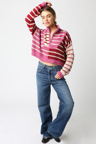 NEWEST ARRIVAL Pink/Red Striped Quarter Zip Pullover