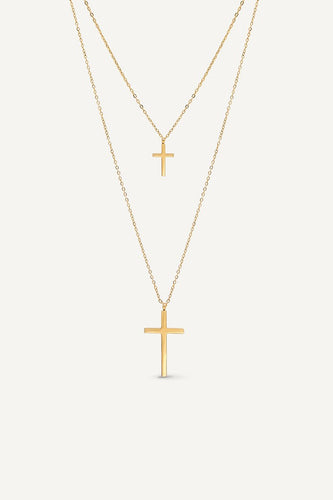 • NEWEST ARRIVAL Gold Double Layered Cross Necklace