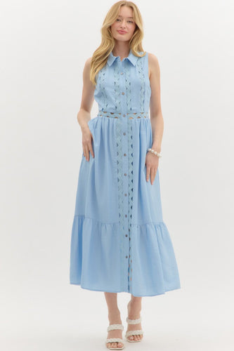 • Baby Blue Button Down Scallop Midi Dress