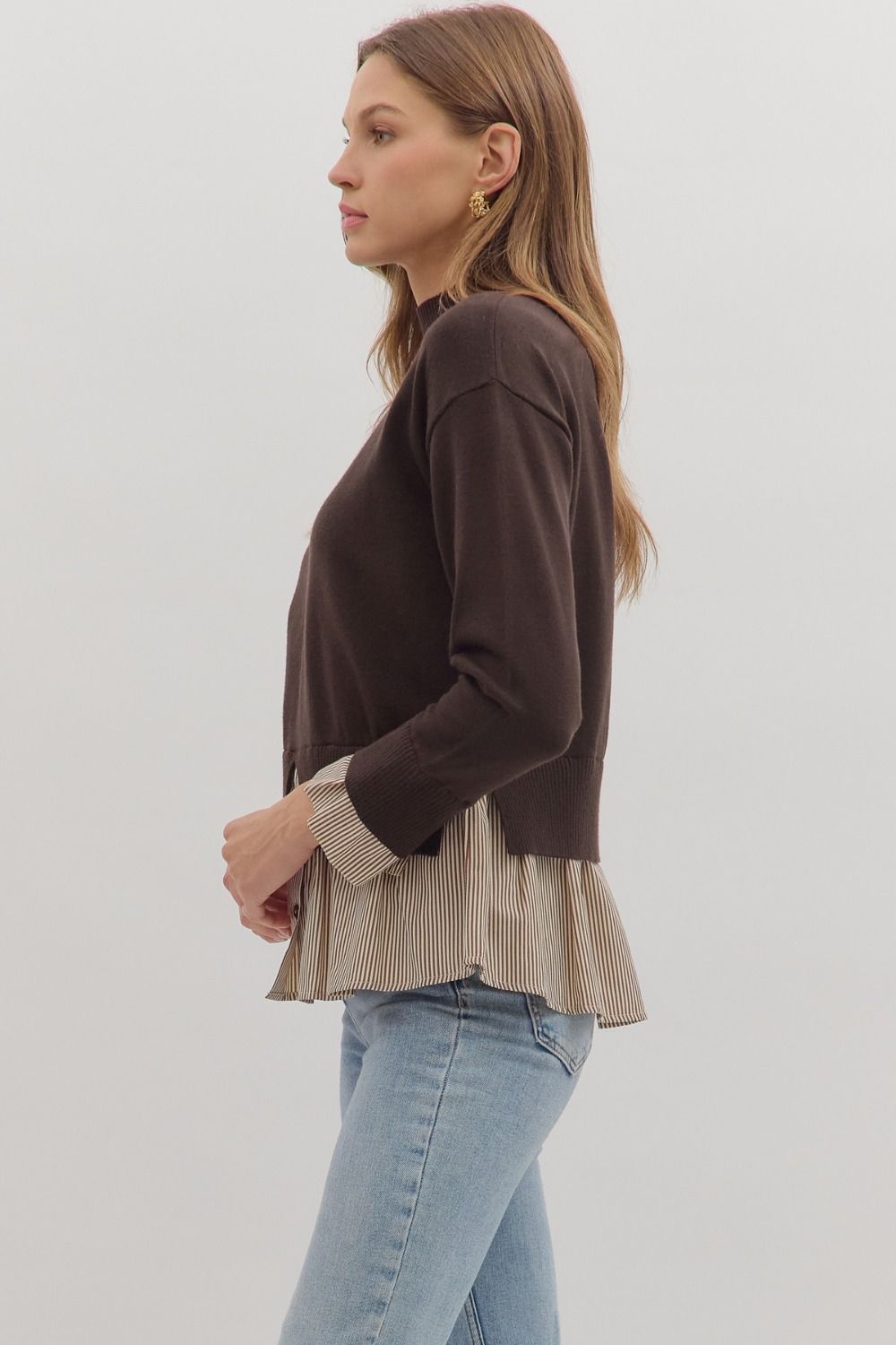 NEWEST ARRIVAL Brown Contrast Mock Neck Sweater