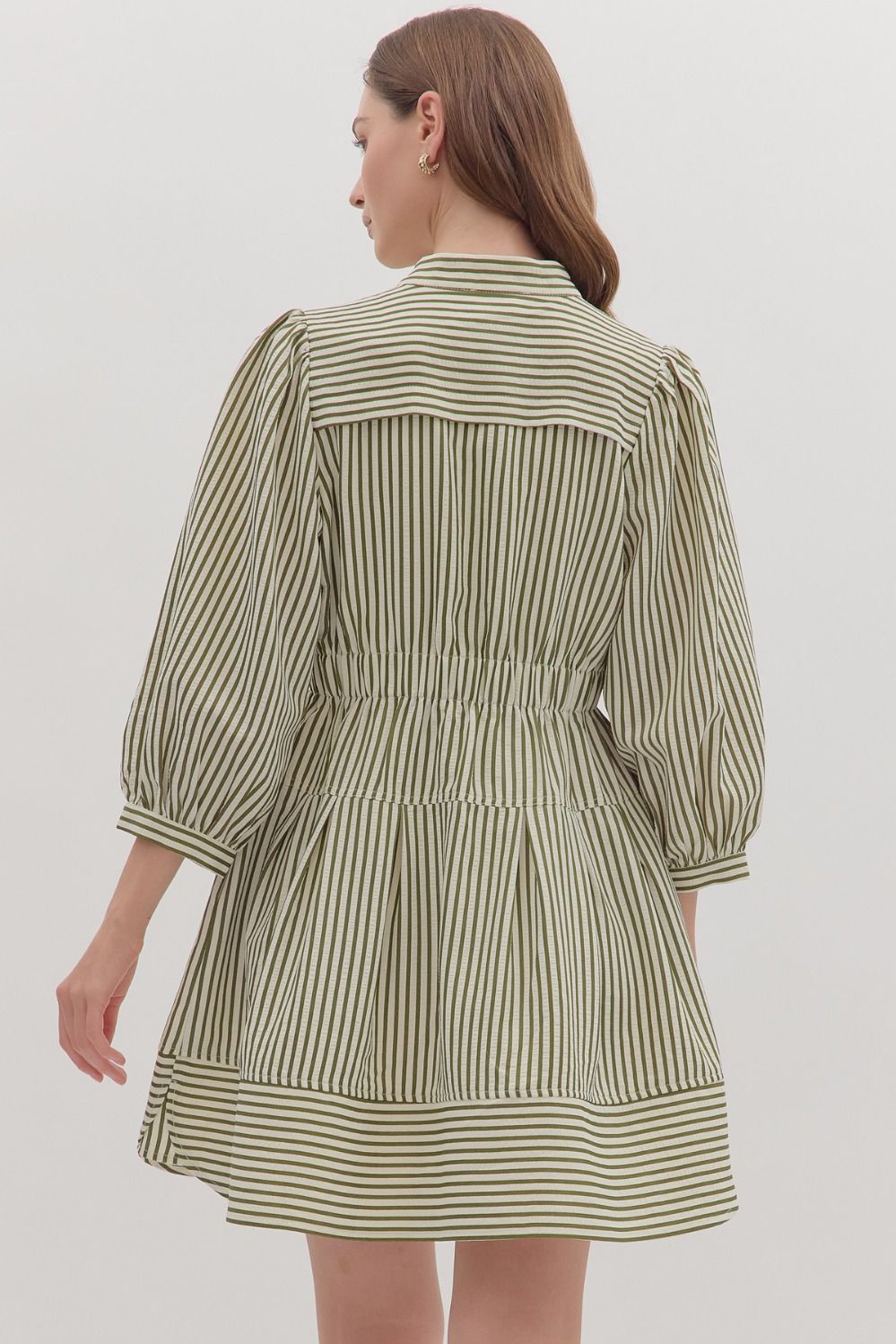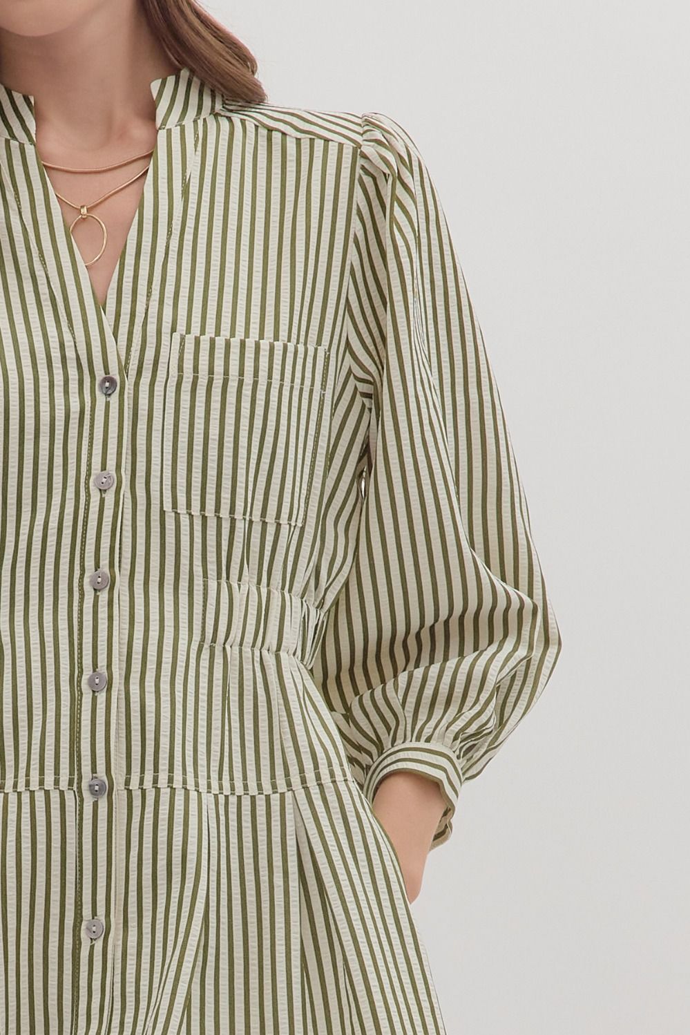 NEWEST ARRIVAL Olive Green Striped Button Front Dress