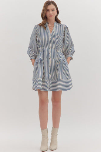 NEWEST ARRIVAL Indigo Blue Striped Button Front Dress