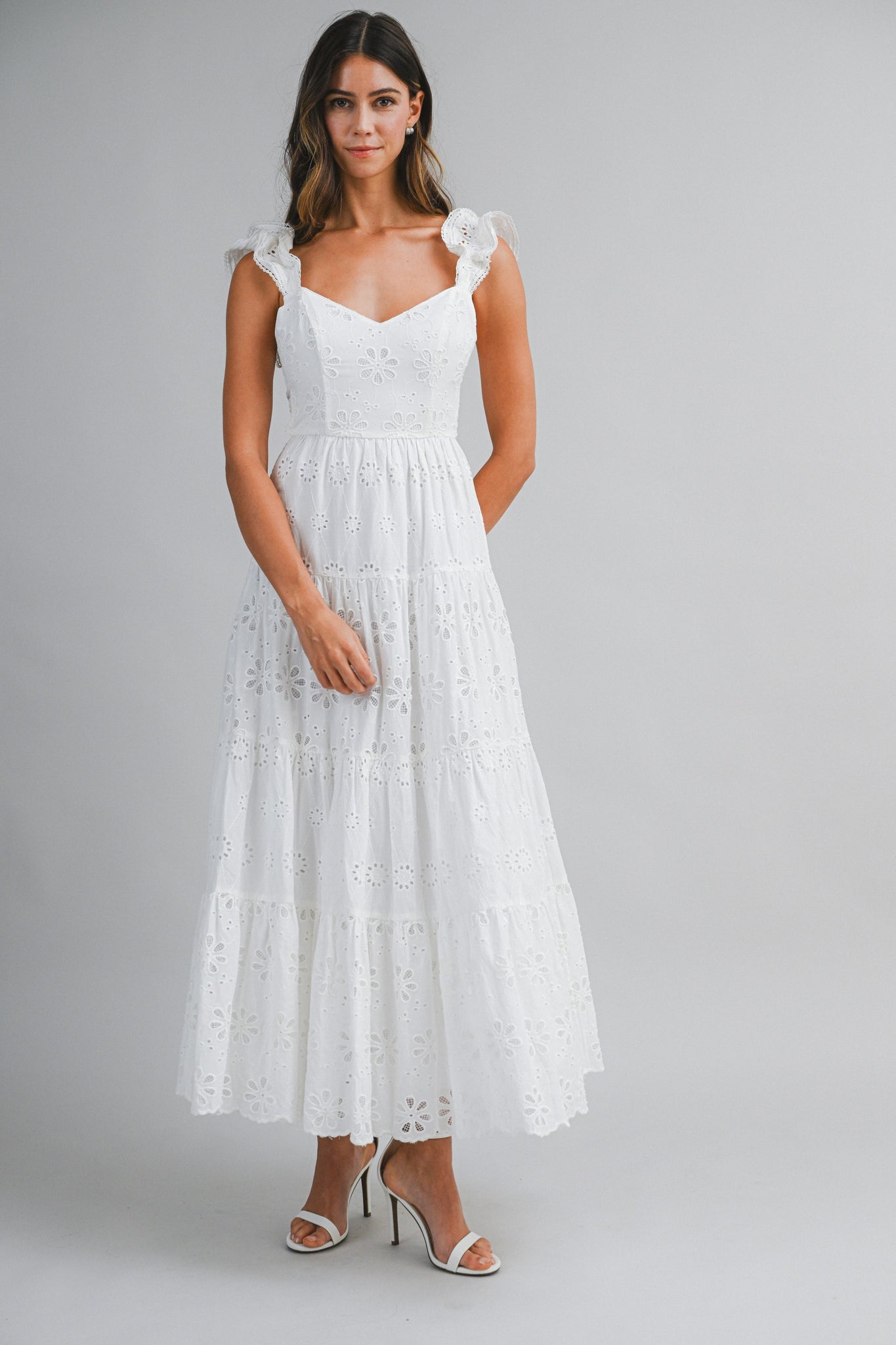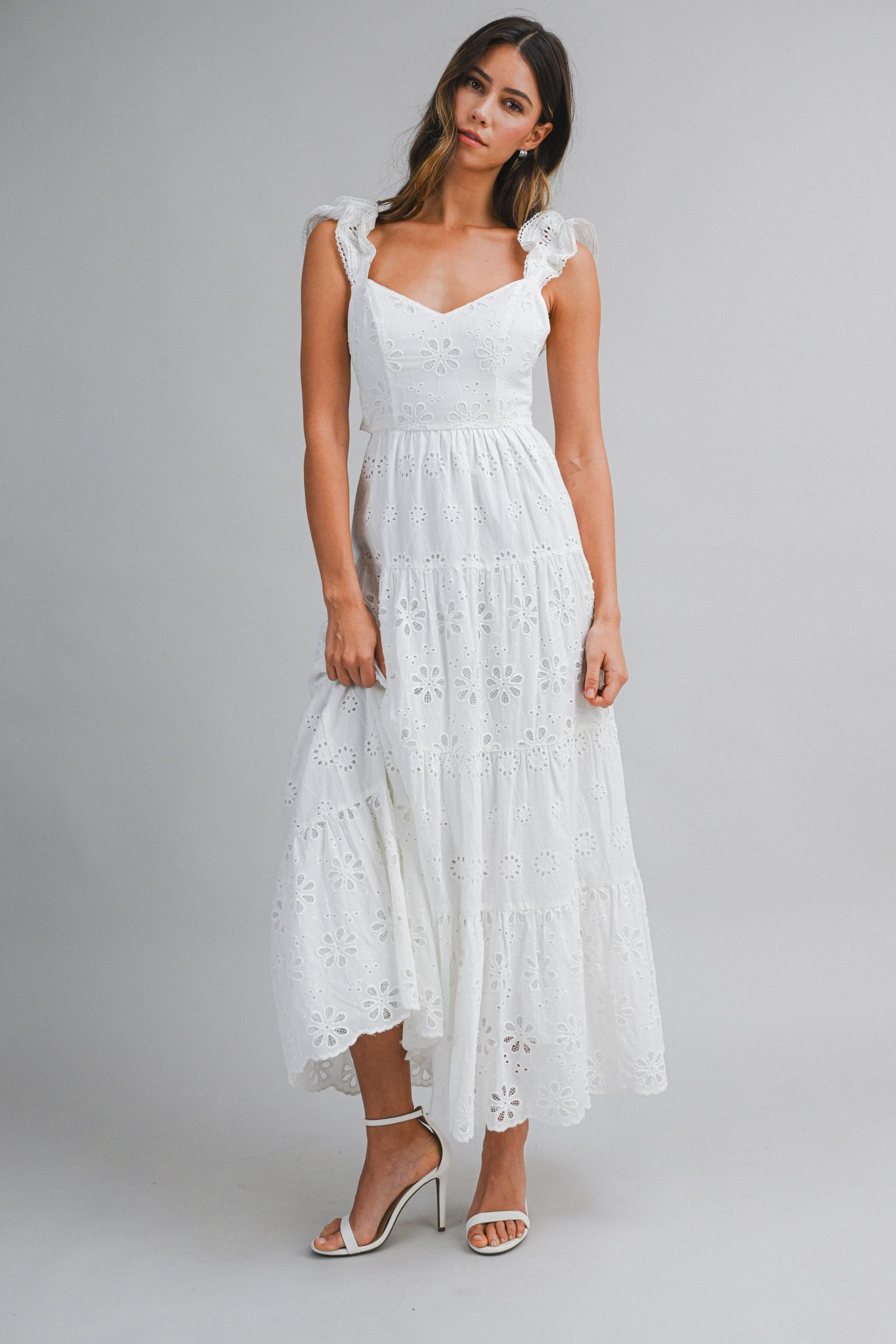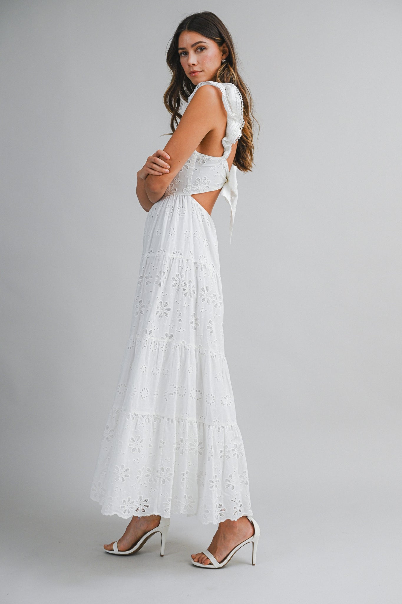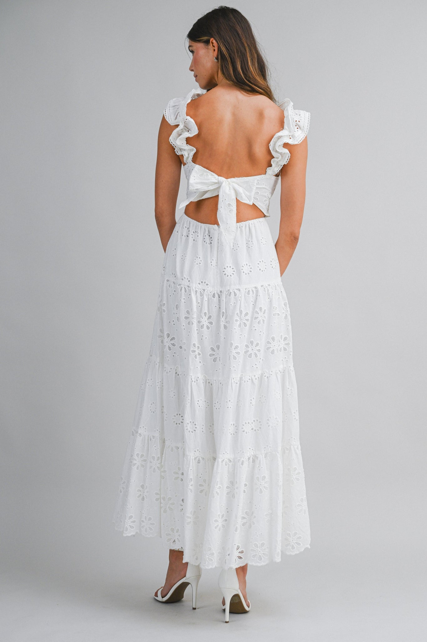 White Eyelet Open Back Midi Dress
