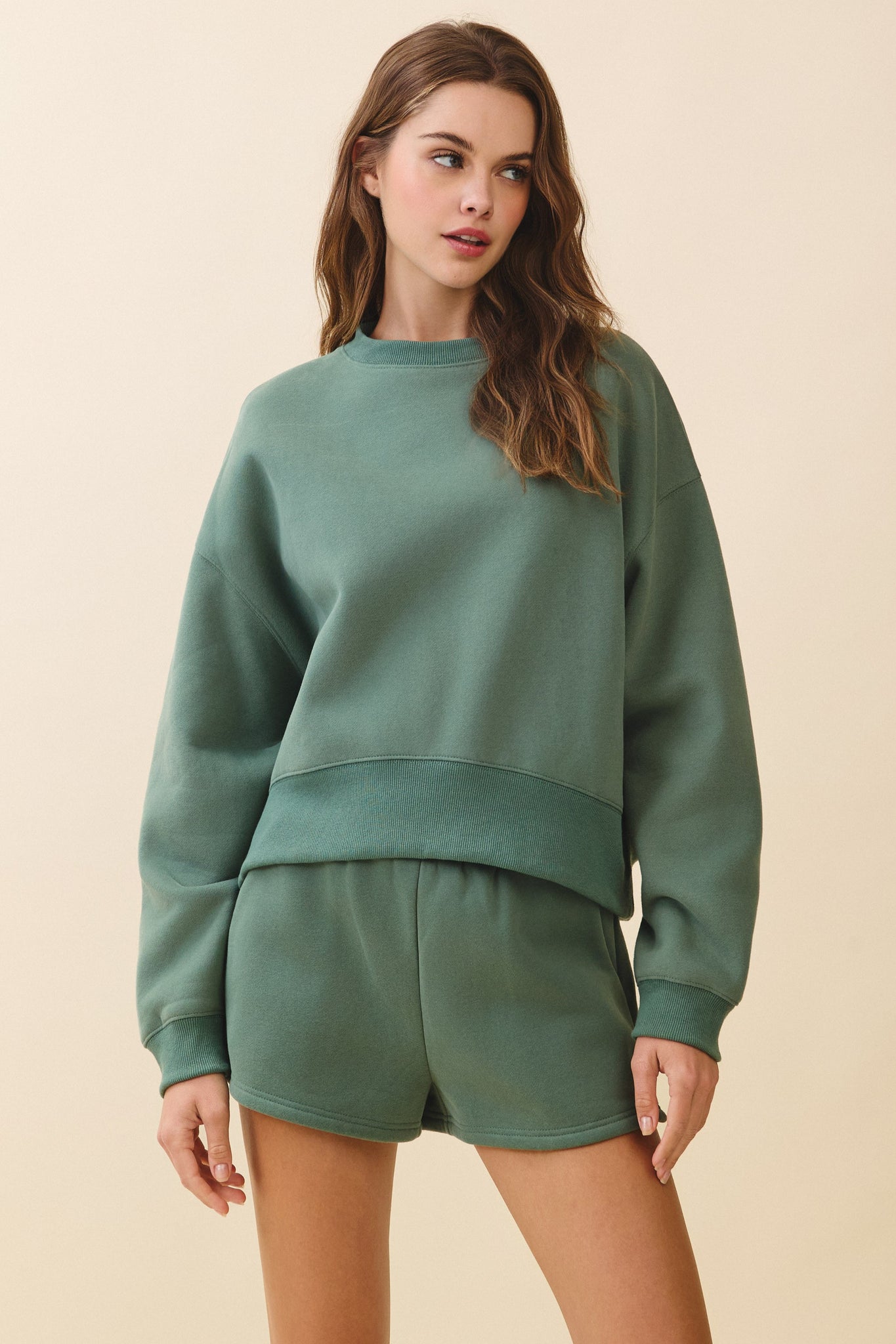 Pine Green Cropped Sweatshirt Jogger Set
