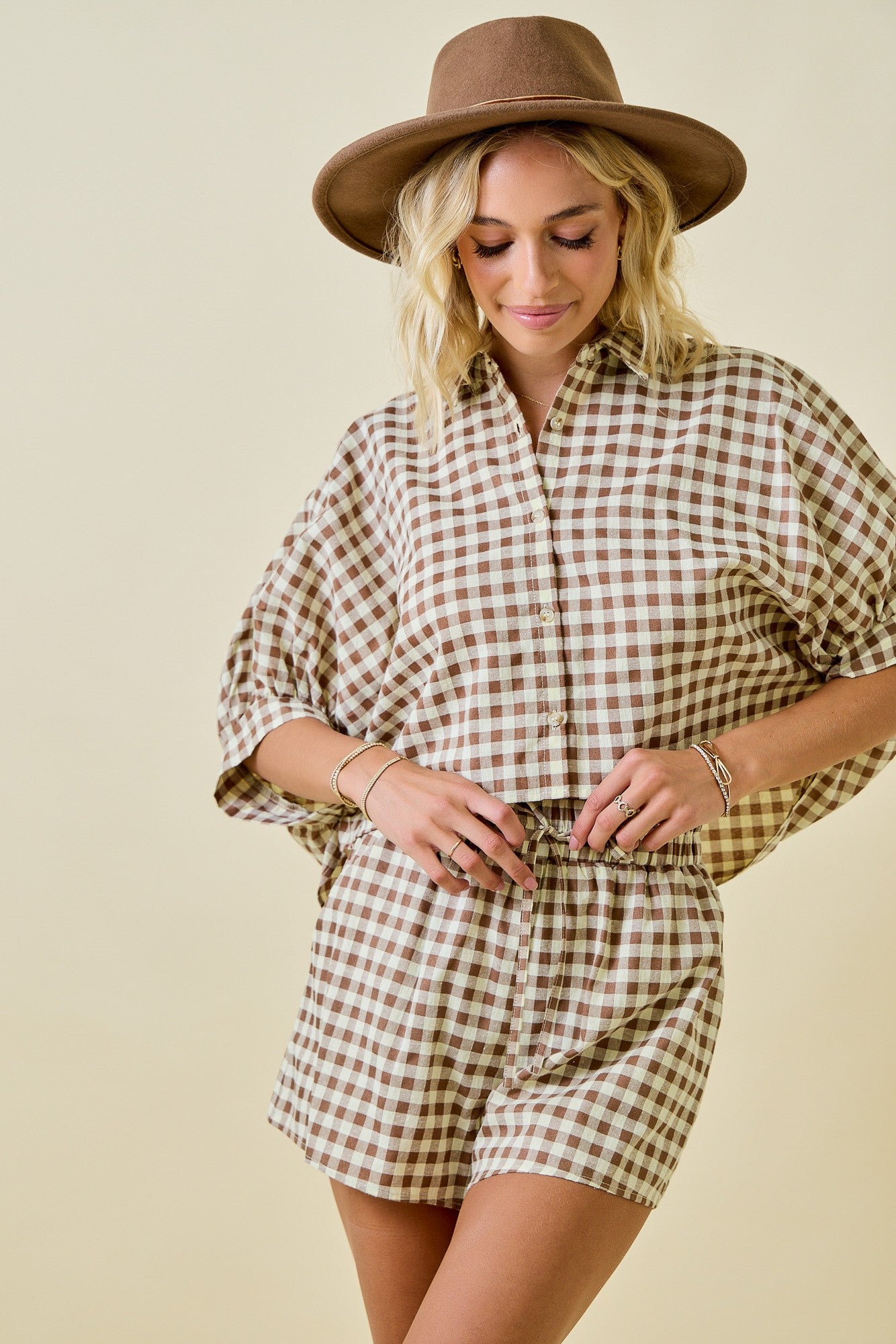 NEWEST ARRIVAL Brown Plaid Shorts Set