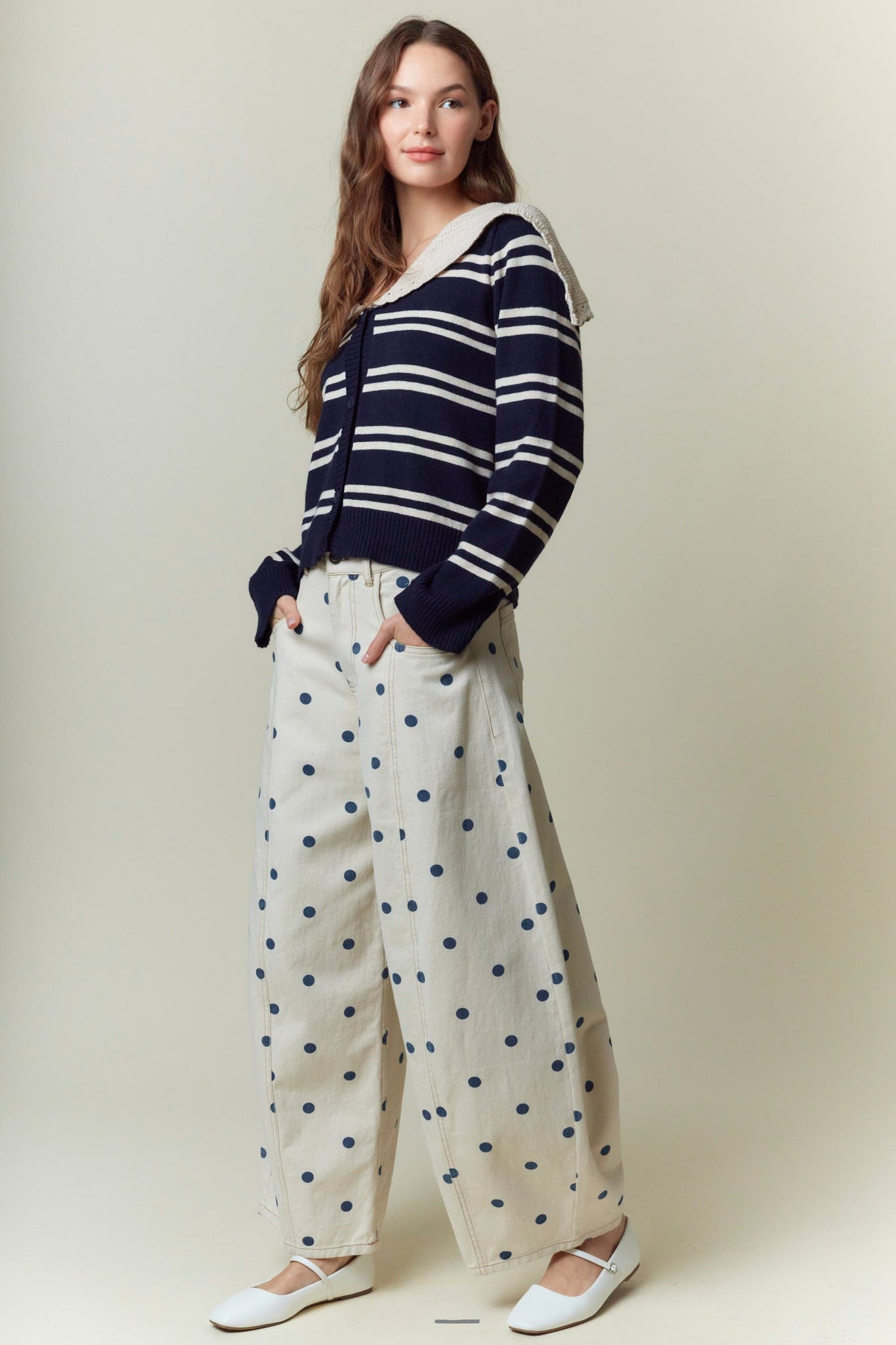 NEWEST ARRIVAL Cream/Navy Wide Leg Barrel Jeans