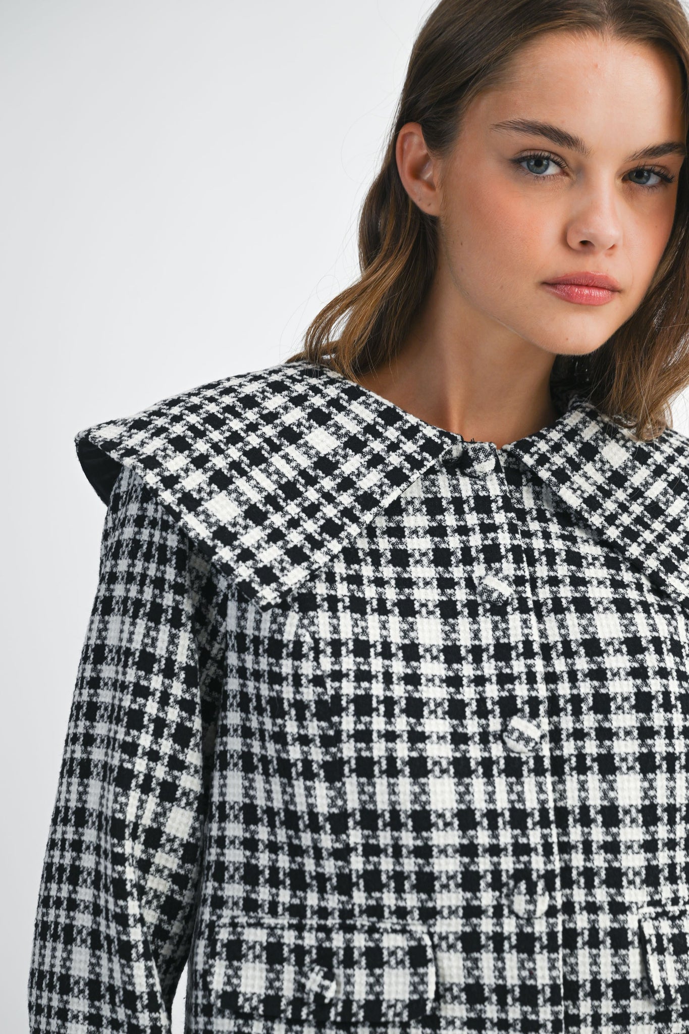 Peter Pan Collar Jacket Top with Front Buttons and Flap Pockets