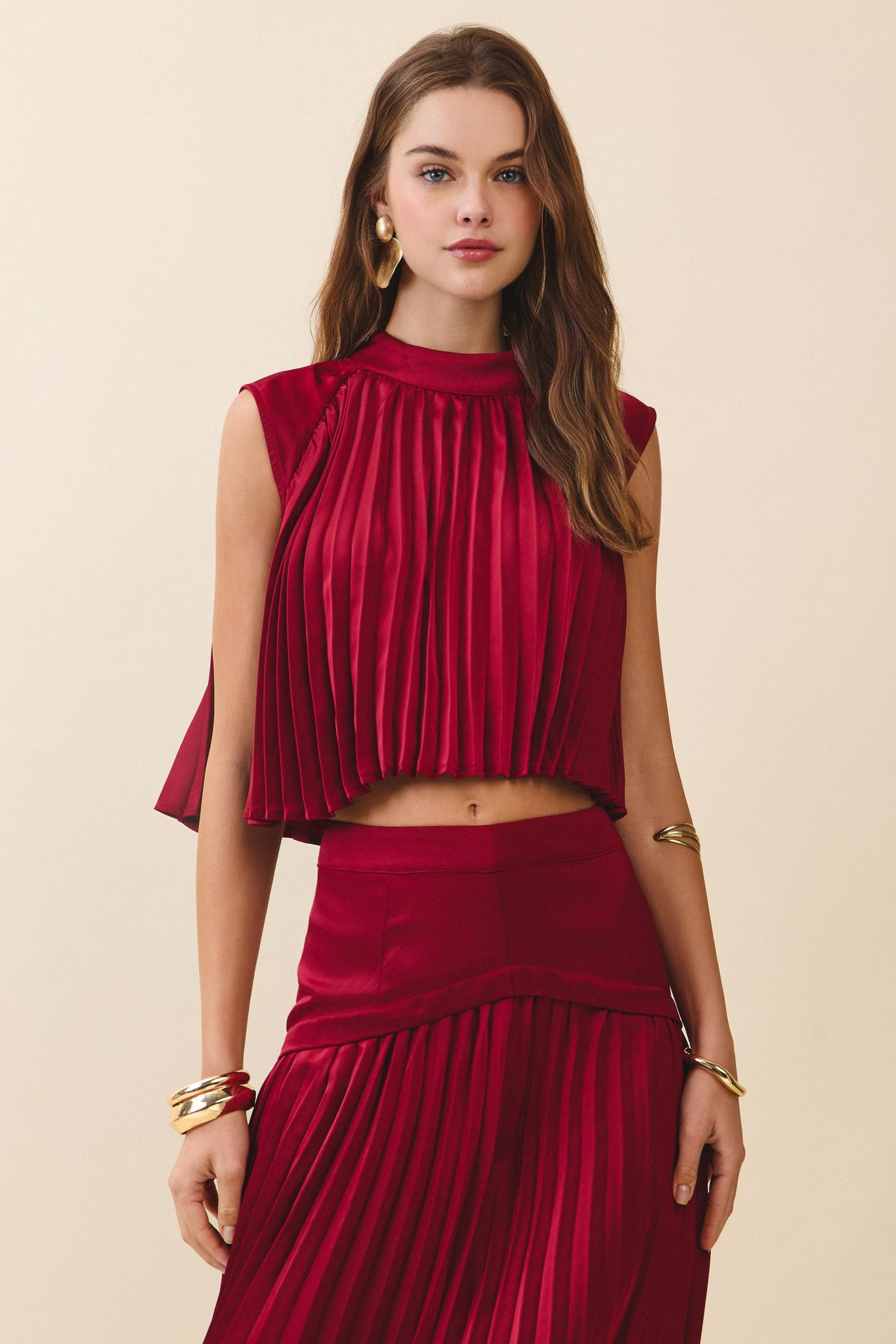 NEWEST ARRIVAL Wine Burgundy Pleated Maxi Skirt Set
