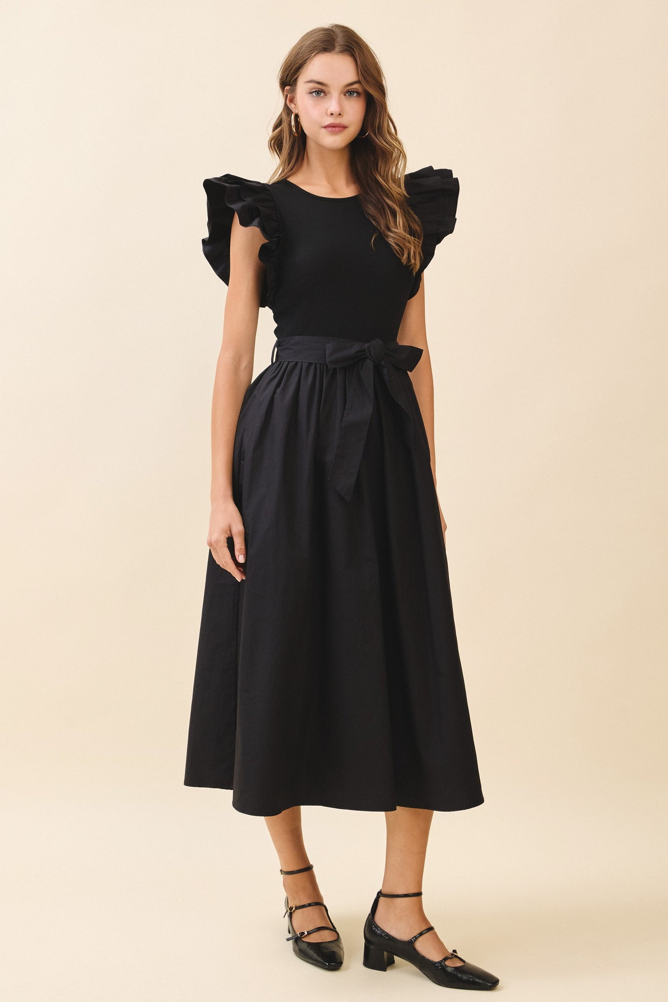 NEWEST ARRIVAL Black Dramatic Sleeve Midi Dress