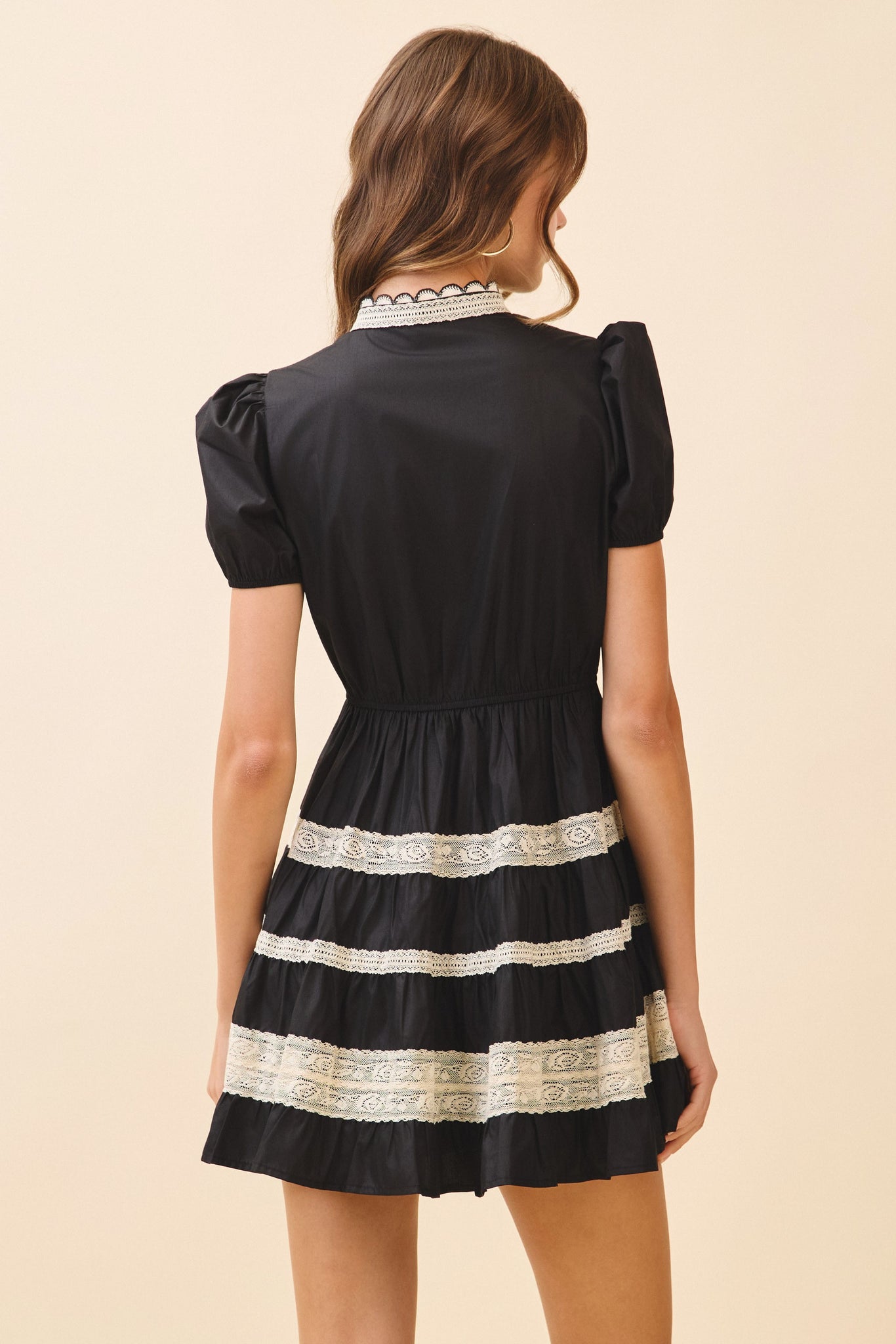 NEWEST ARRIVAL Black/Ivory Lace Puff Sleeve Dress