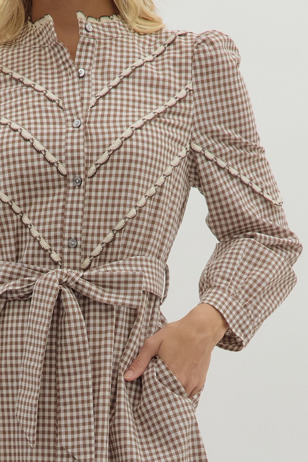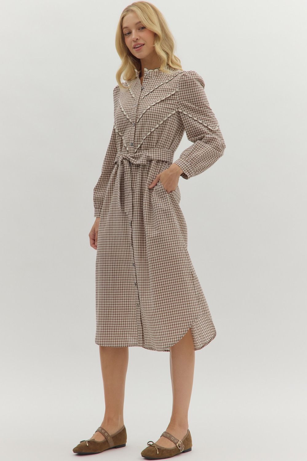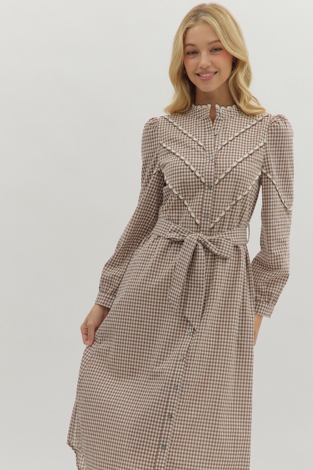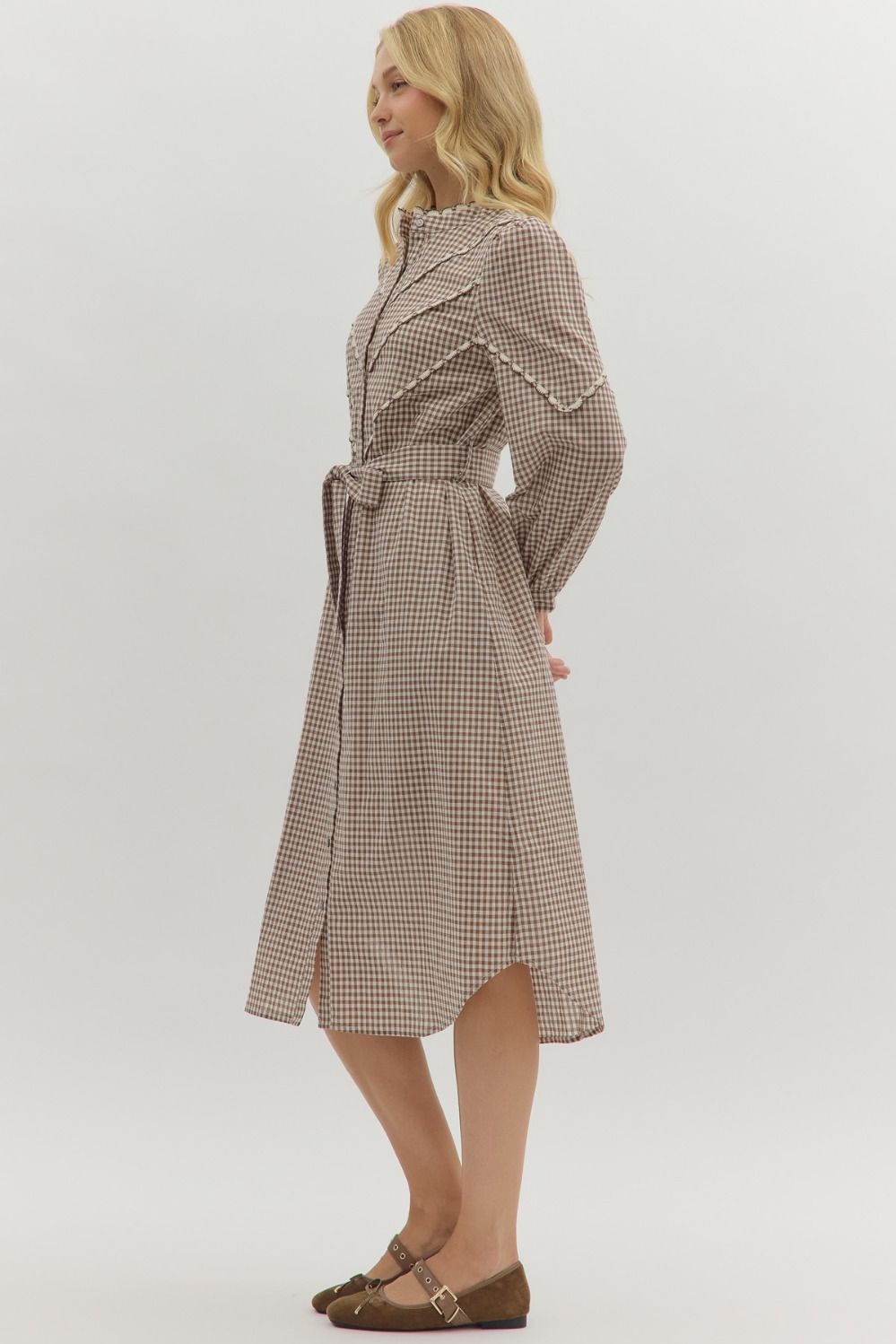 NEWEST ARRIVAL Brown Gingham Button Down Midi Dress