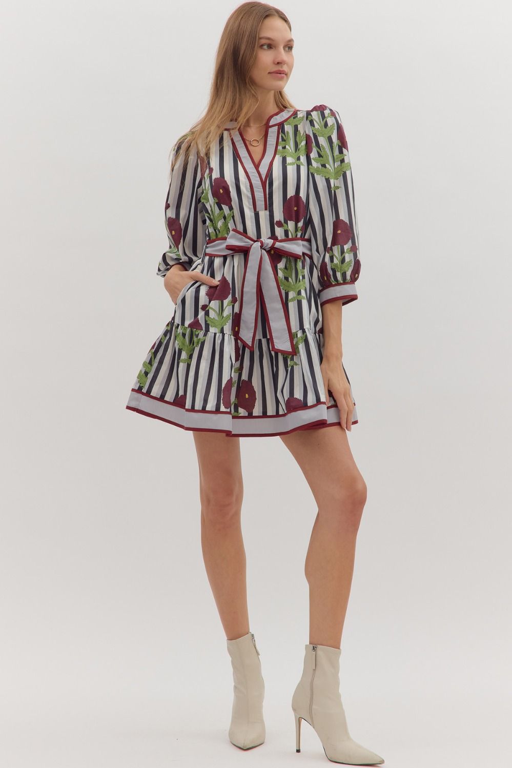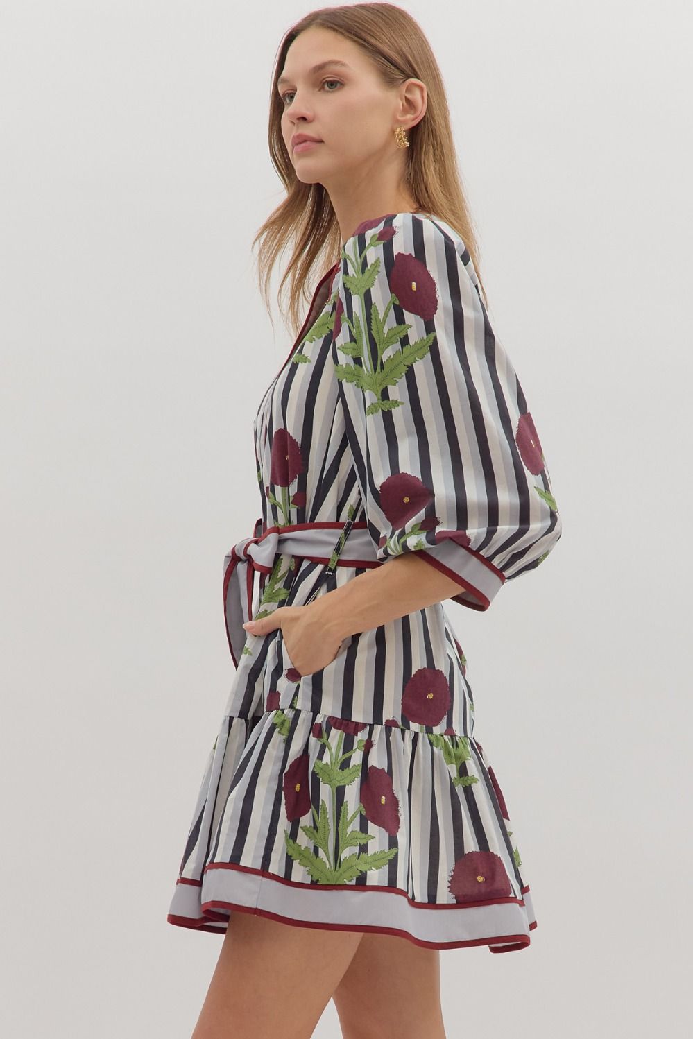NEWEST ARRIVAL Burgundy Floral Striped Dress