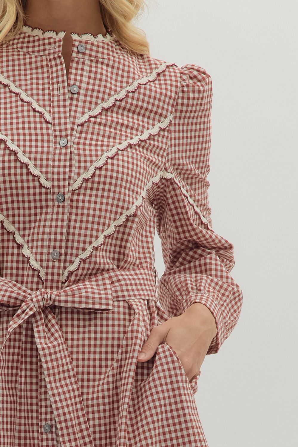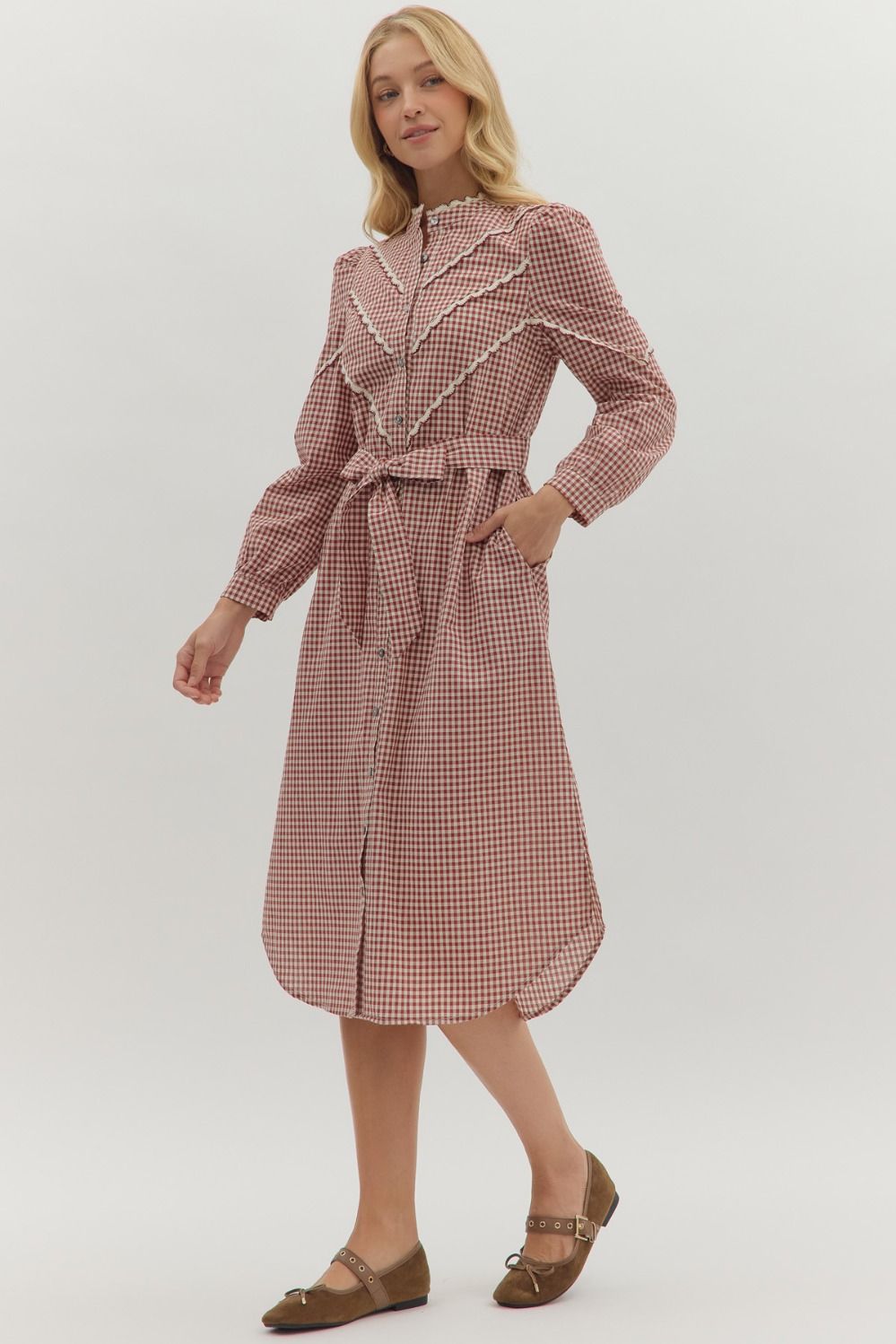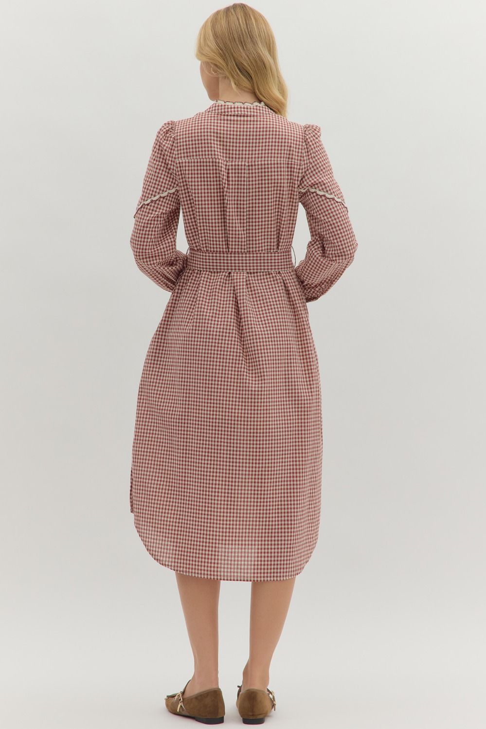 NEWEST ARRIVAL Burgundy Gingham Button Down Midi Dress