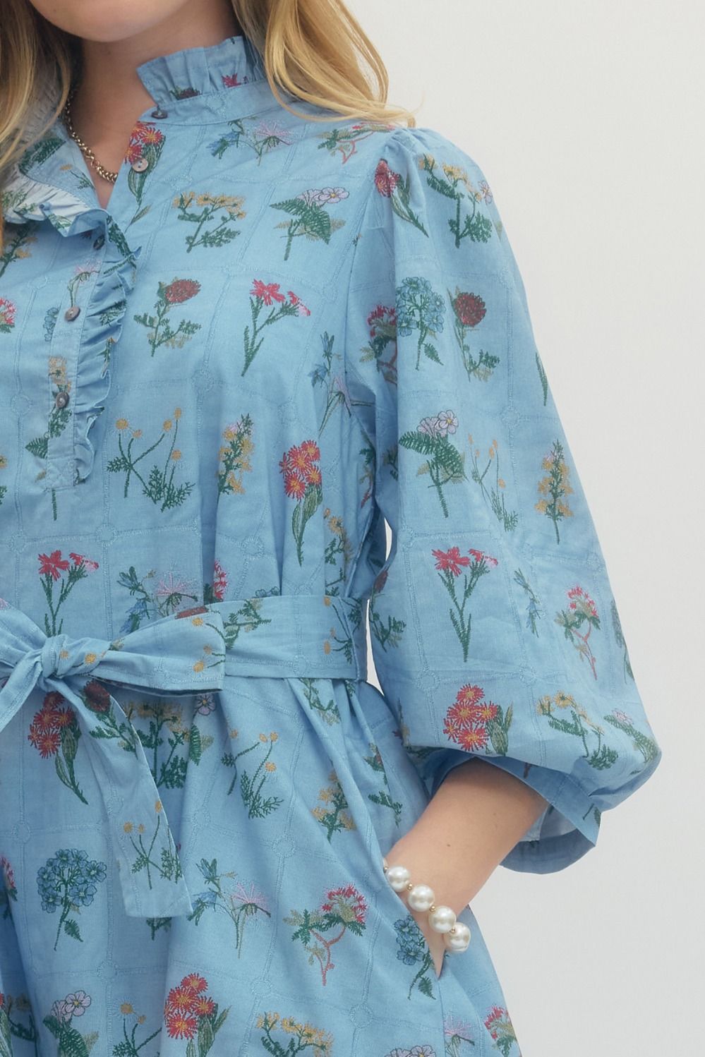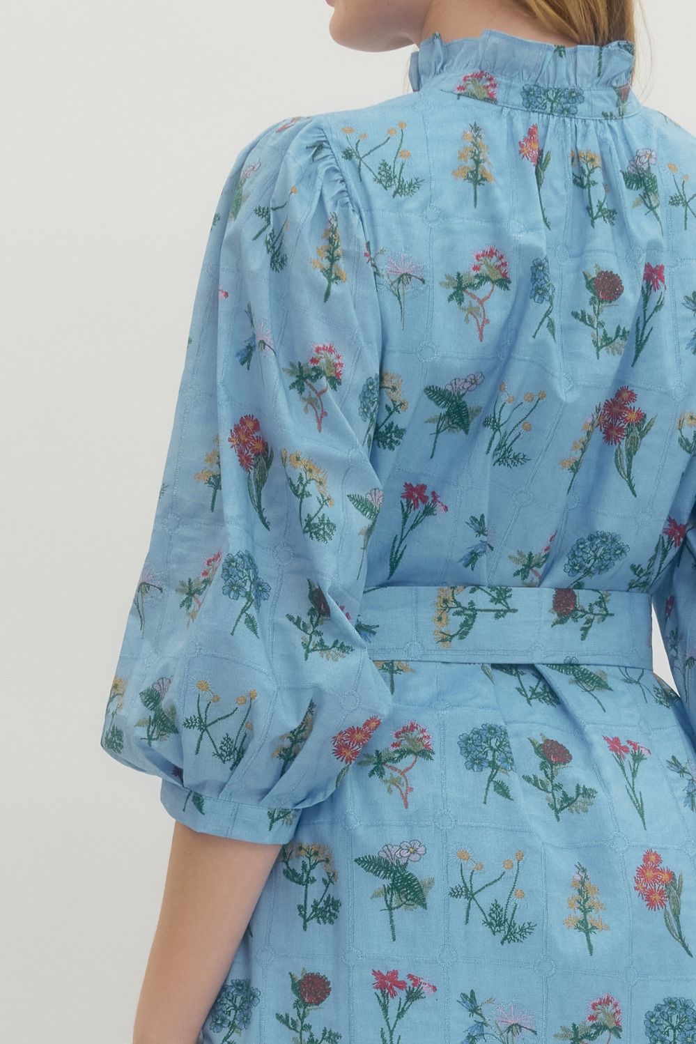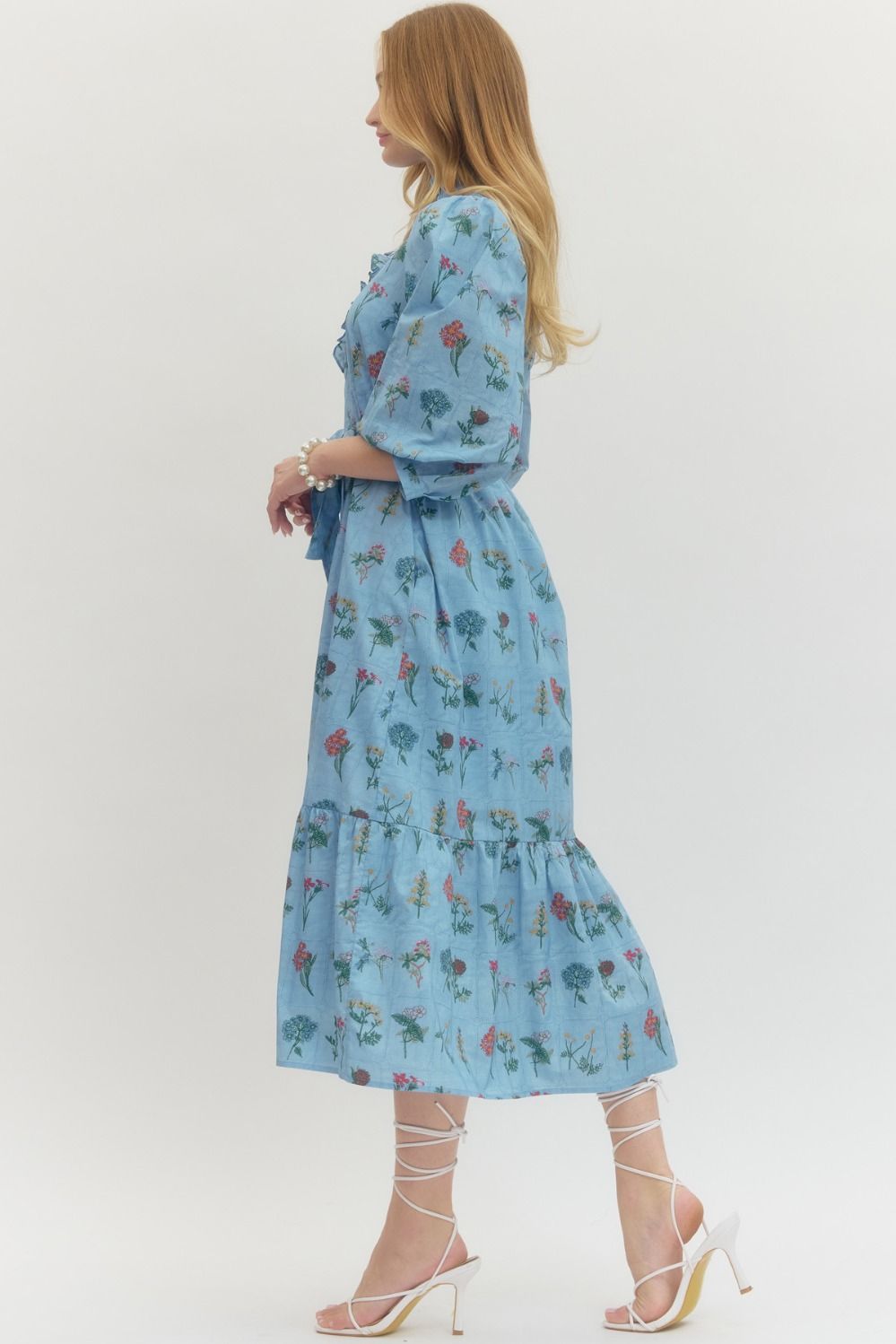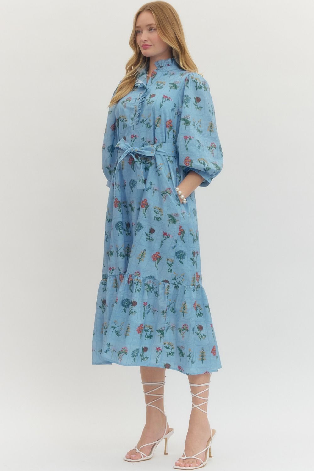 Chambray Blue Floral Midi Dress
