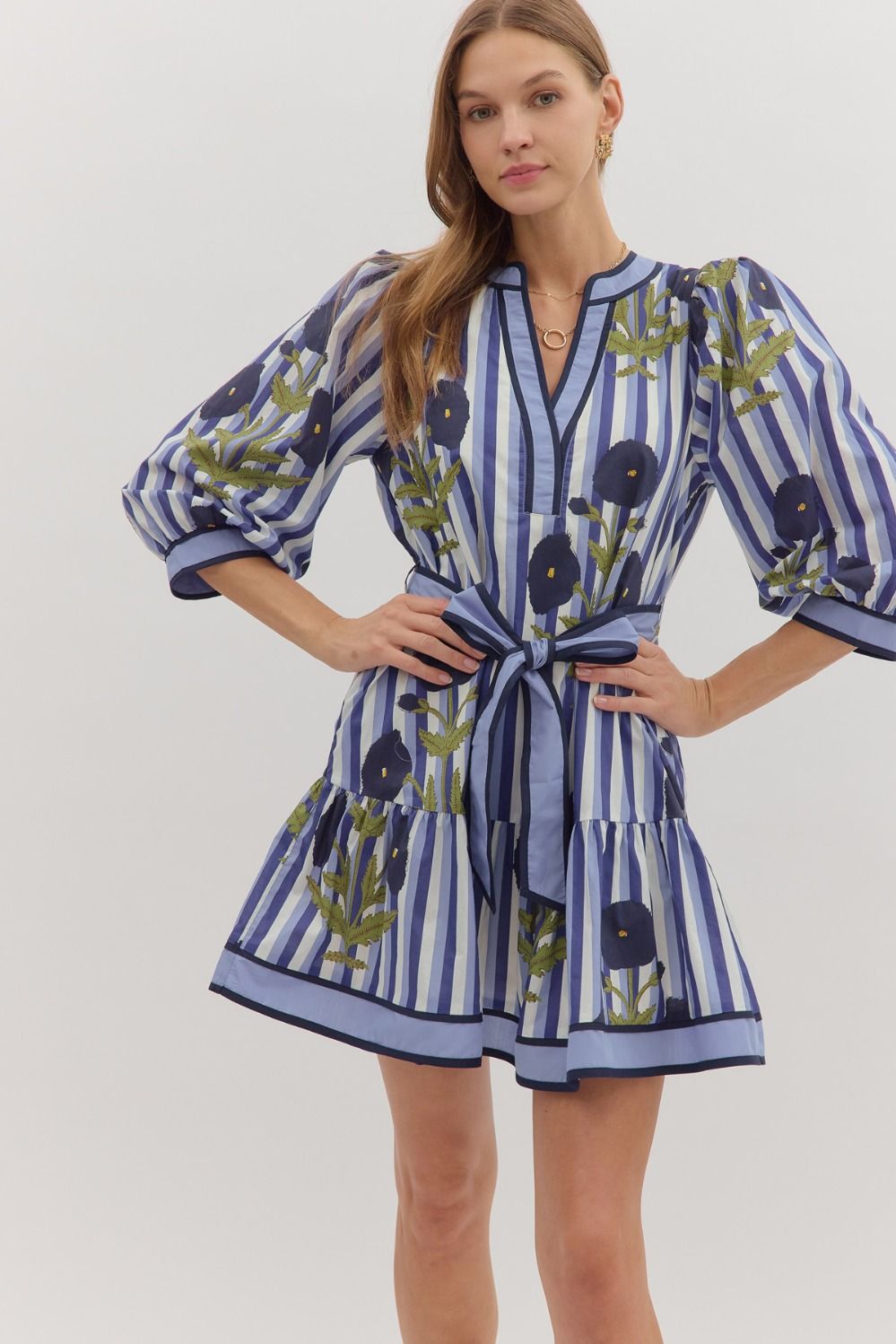 NEWEST ARRIVAL Navy Floral Striped Dress