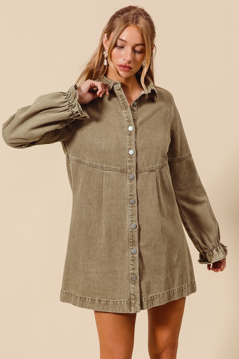 NEWEST ARRIVAL Olive Brown Washed Denim Dress