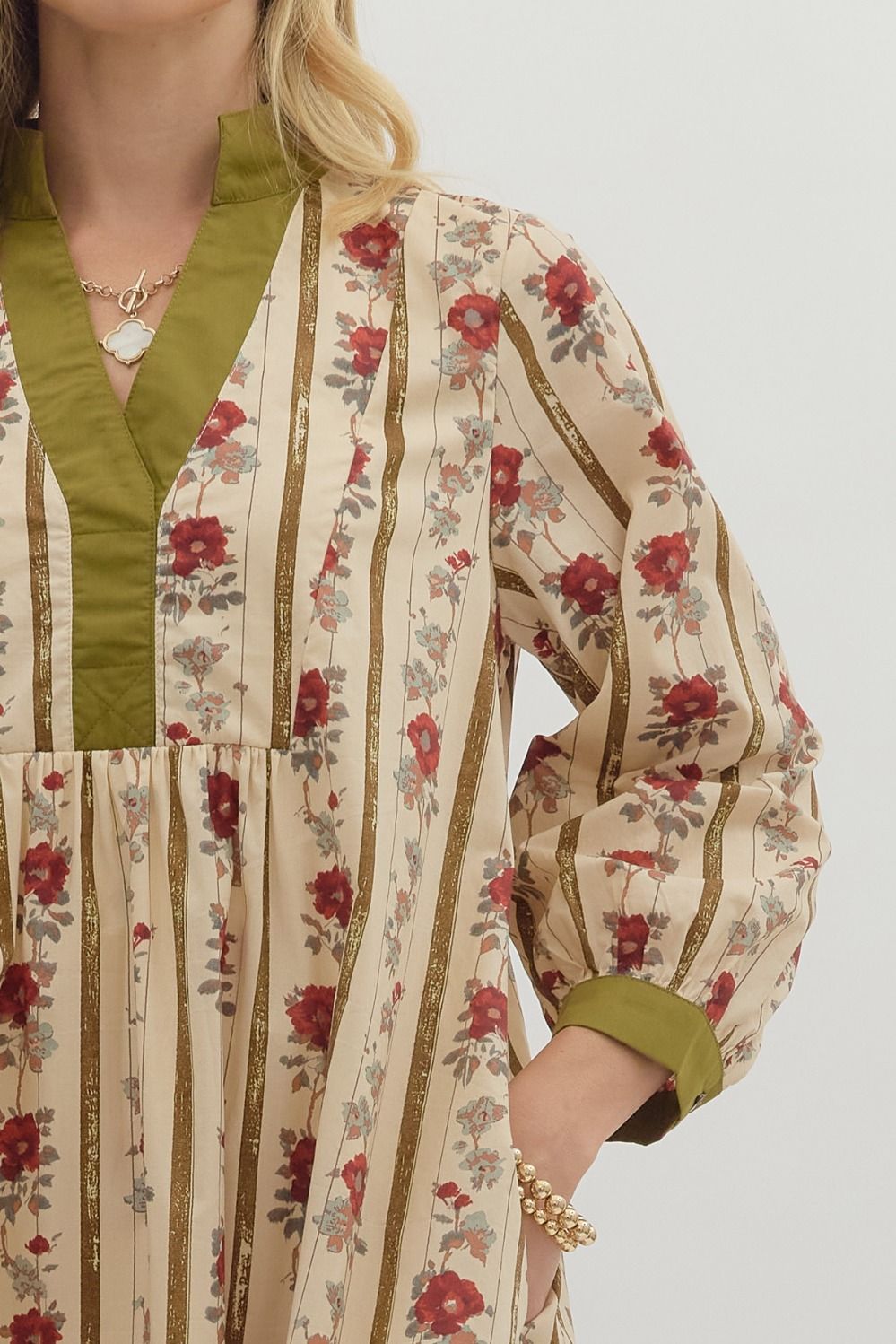 NEWEST ARRIVAL Olive Fall Floral Flow Dress