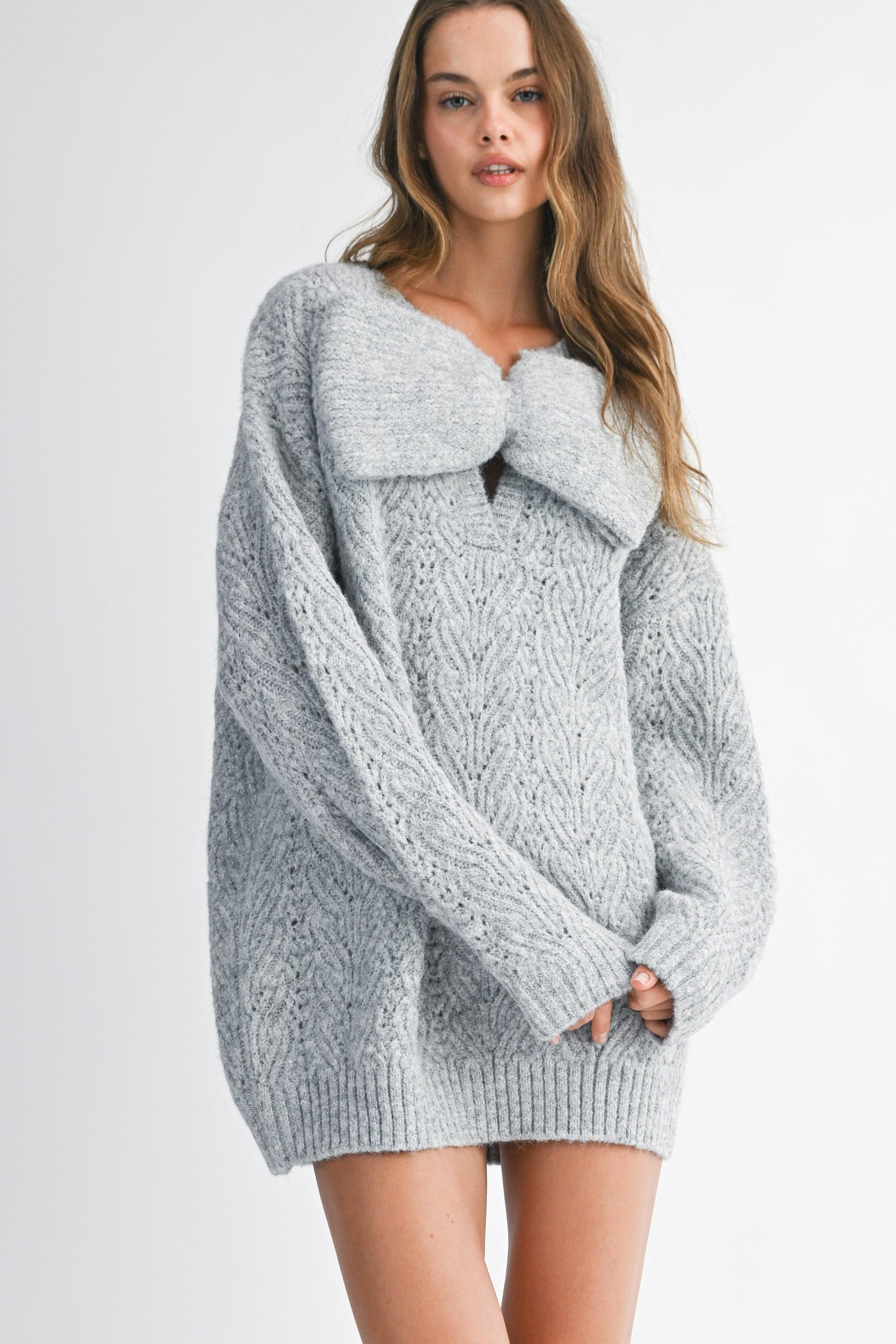 NEWEST ARRIVAL ONLINE ONLY Gray Bow Knit Sweater Dress
