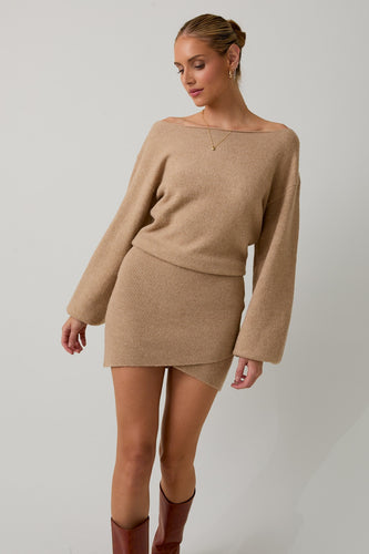 NEWEST ARRIVAL Tan Boatneck Sweater Mini Dress