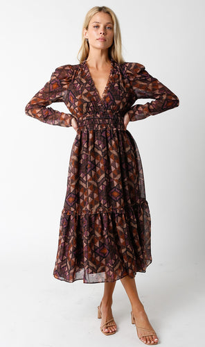 NEWEST ARRIVAL Brown/Purple Geometric Print Midi Dress