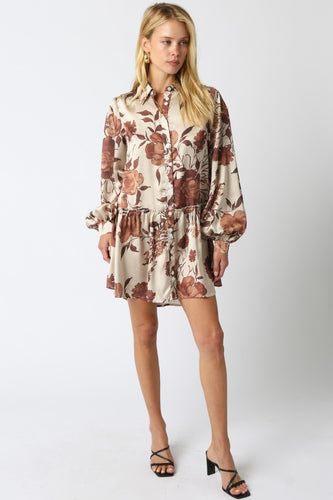 NEWEST ARRIVAL Brown Floral Satin Dress