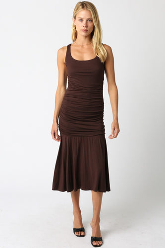 NEWEST ARRIVAL Chocolate Brown Ruched Midi Dress