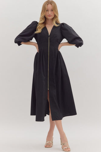 NEWEST ARRIVAL Black or Brown Zipper Front Midi Dress