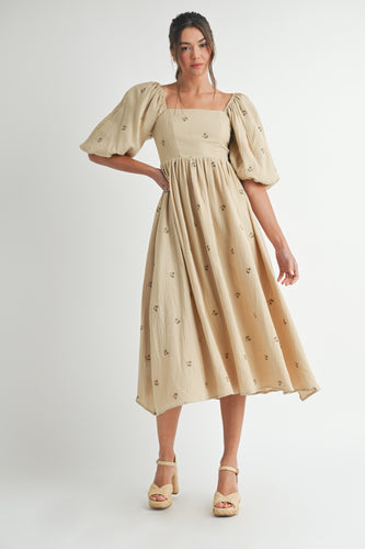 NEWEST ARRIVAL Taupe Embroidered Floral Midi Dress