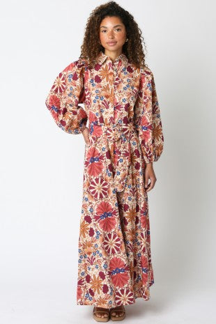 NEWEST ARRIVAL Cream Rust Floral Maxi Dress