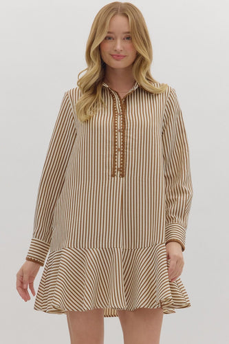 NEWEST ARRIVAL Olive/Ivory Striped Accent Collar Dress
