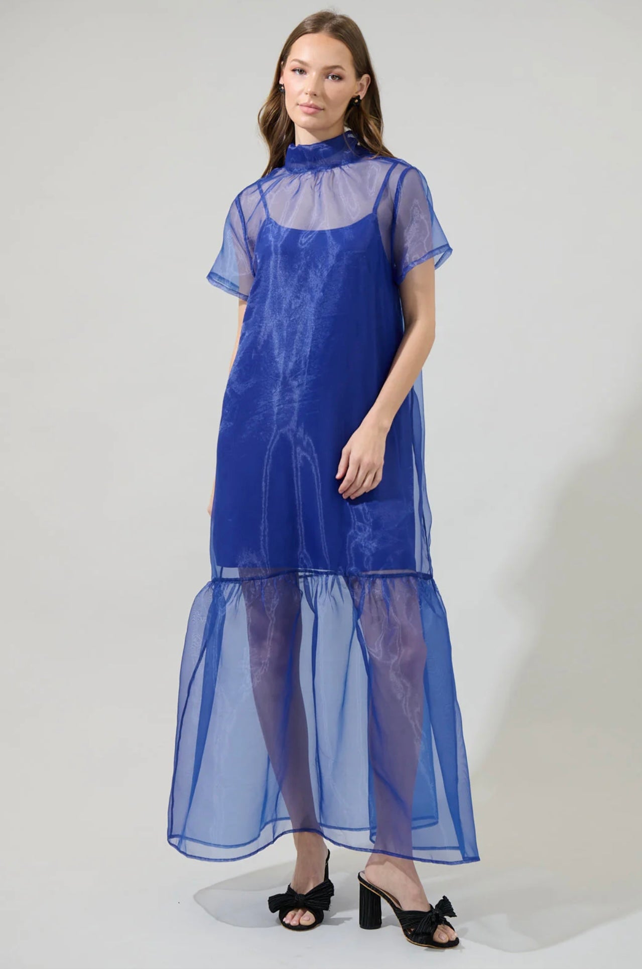 Royal Blue Organza Overlay Maxi Dress