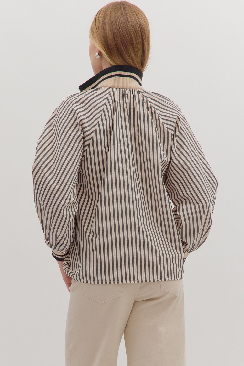 NEWEST ARRIVAL Black/Ivory Striped Contrast Combo Blouse