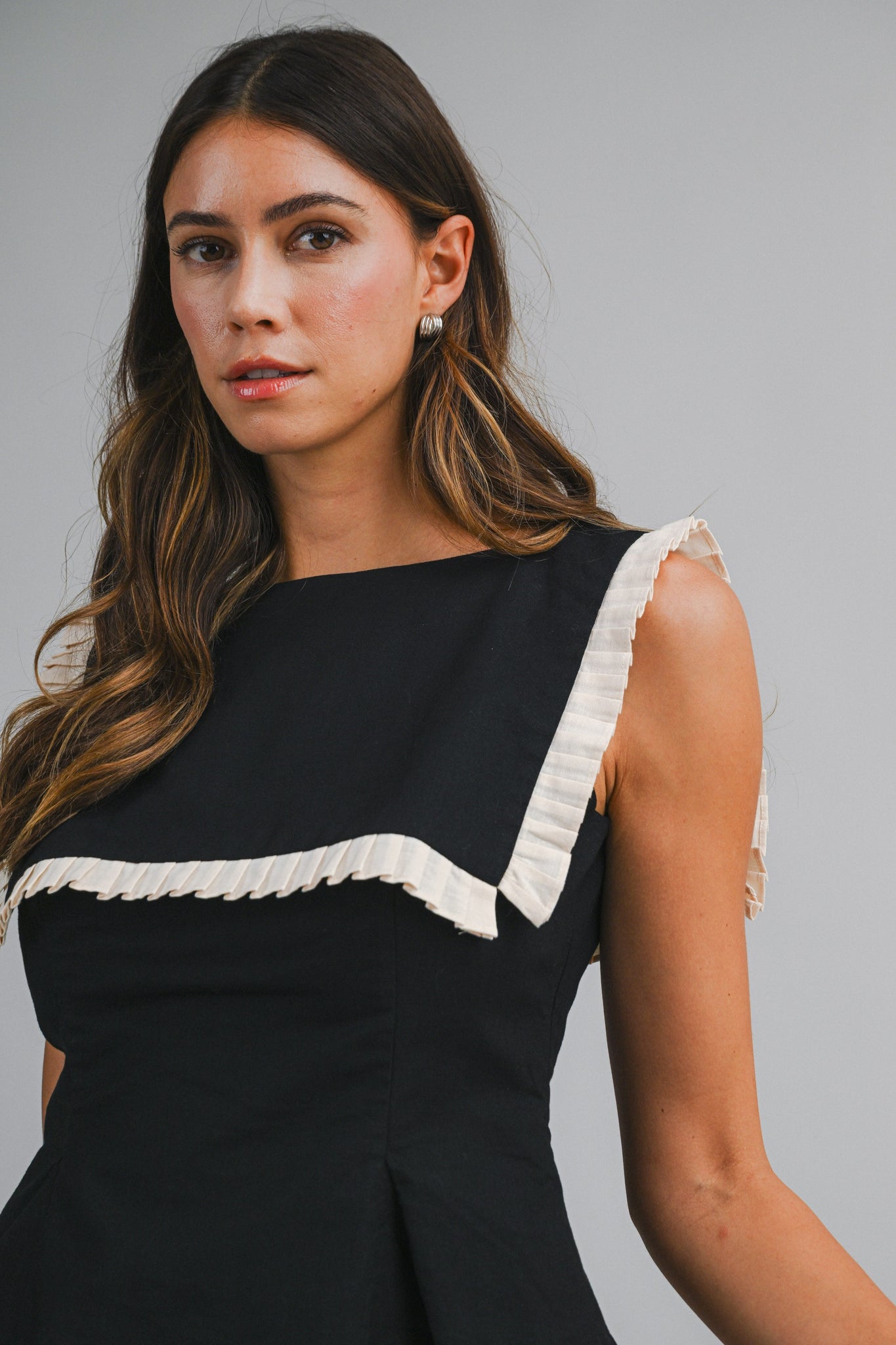 NEWEST ARRIVAL Black/White Pleated Bib Collar Blouse
