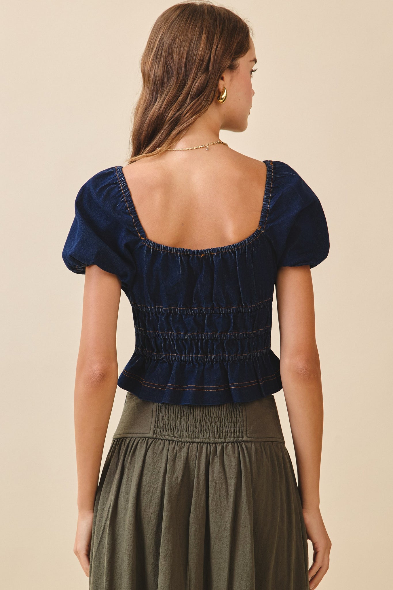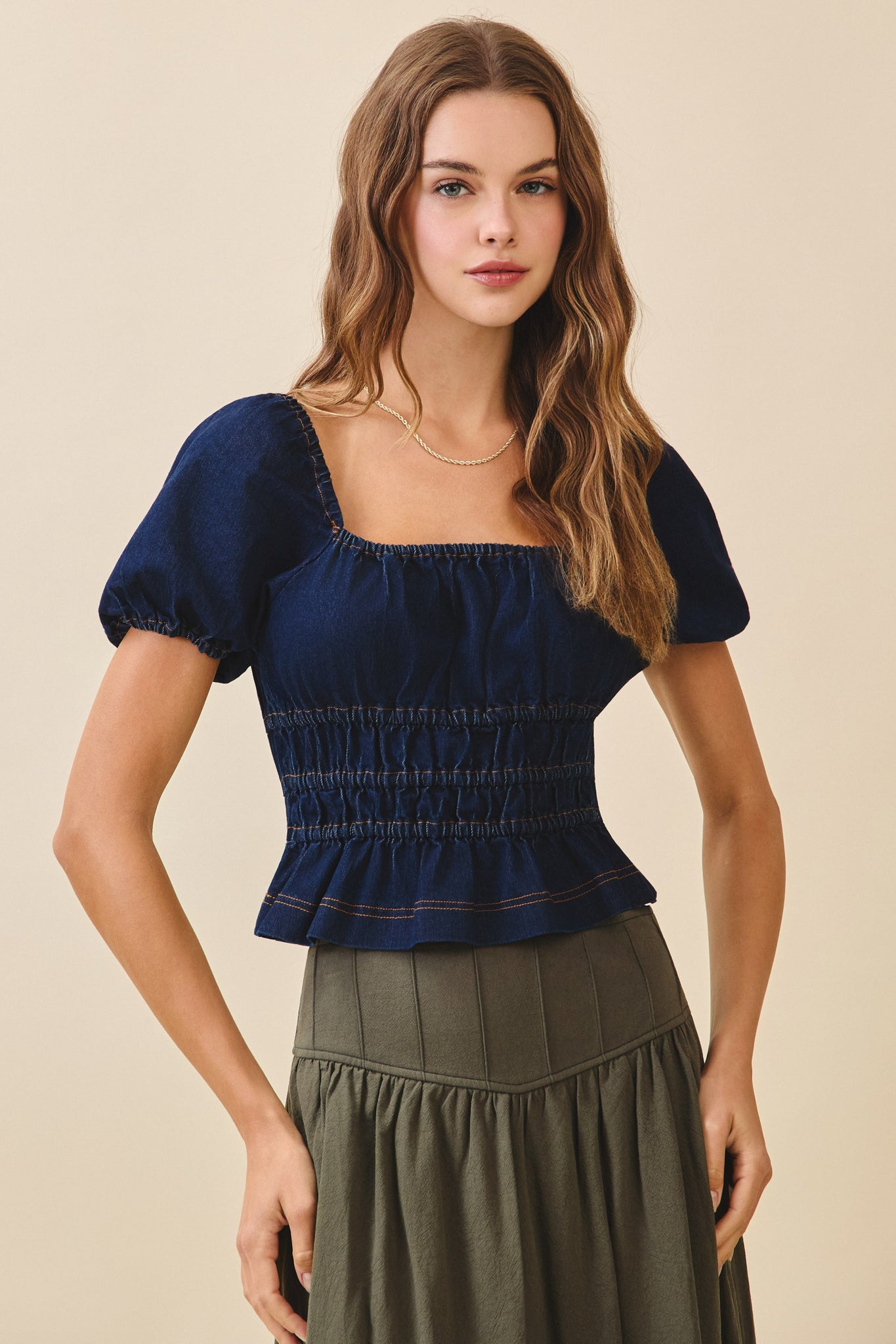 NEWEST ARRIVAL Dark Denim Smocked Shorts Set
