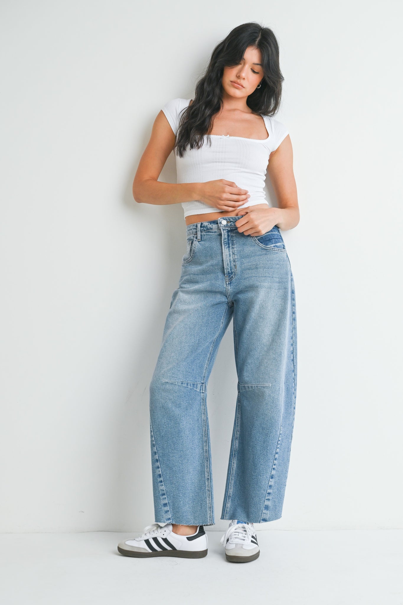 NEWEST ARRIVAL Denim Medium Wash Barrel Jeans