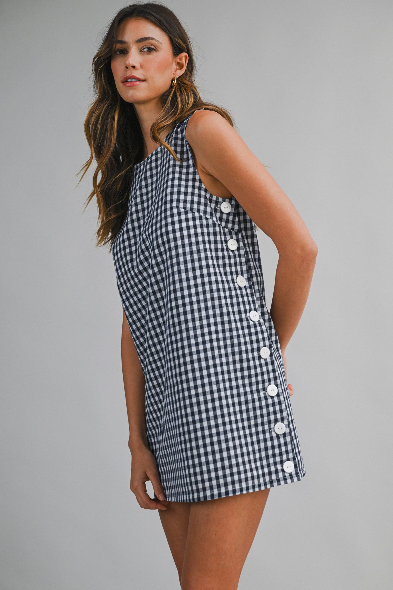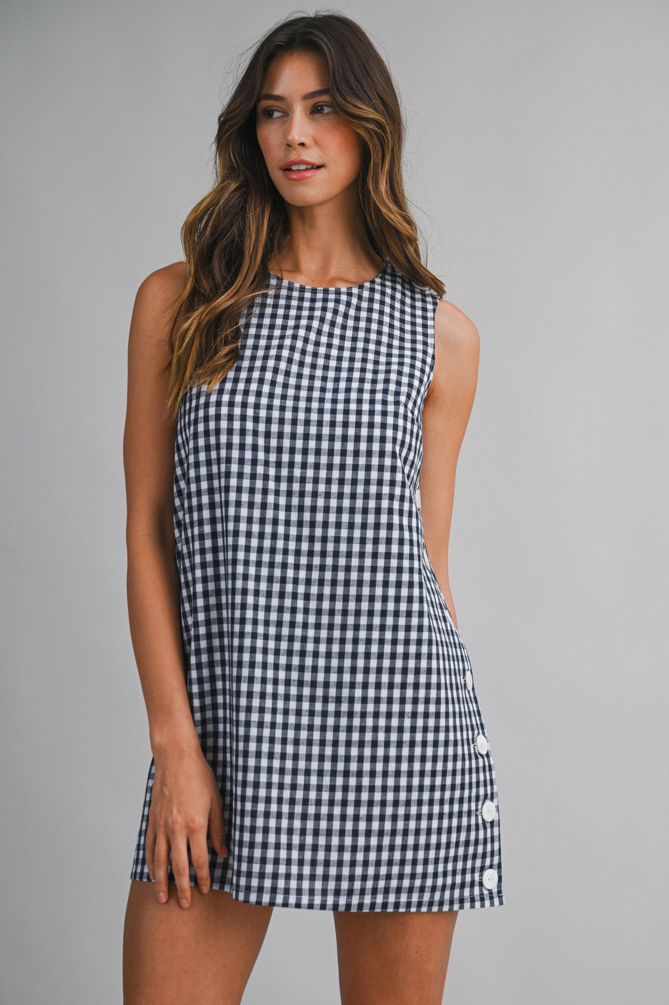 Navy Gingham Side Button Dress