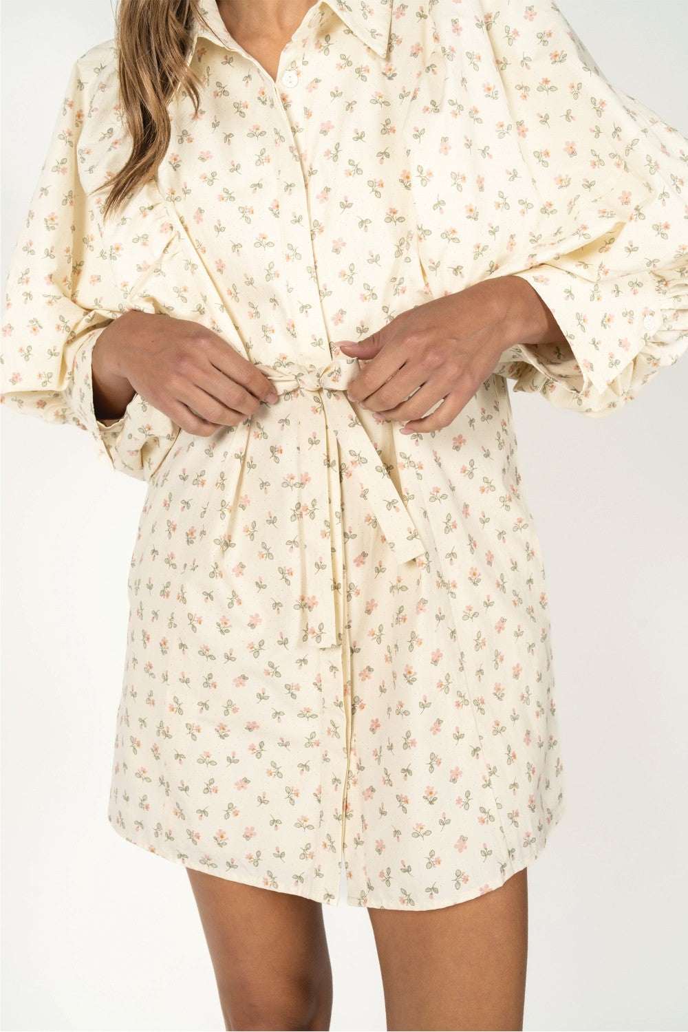 NEWEST ARRIVAL *PREORDER 2/10* Cream/Pink Ditsy Extra Puff Sleeve Button Front Dress