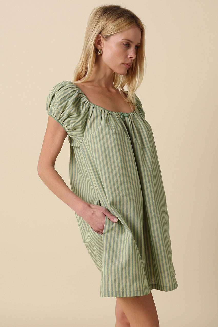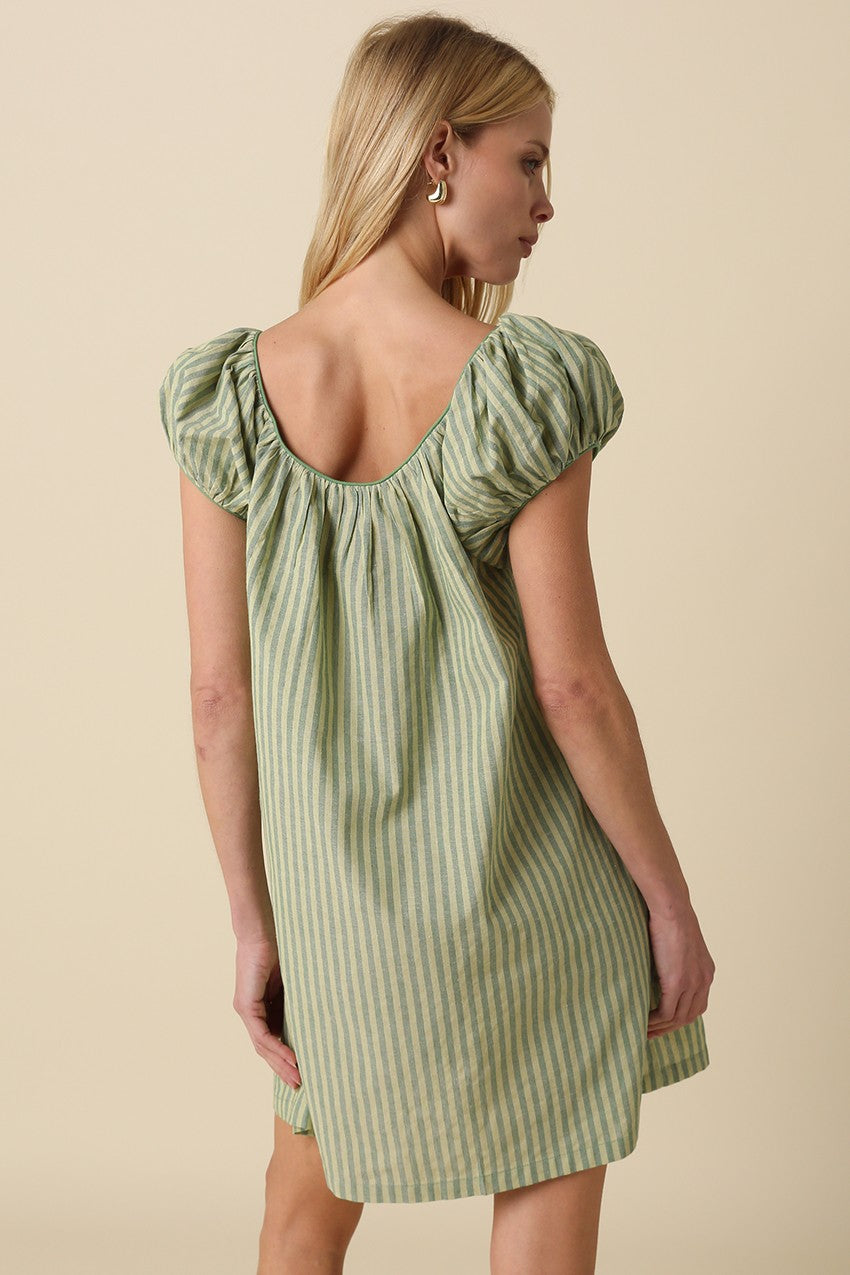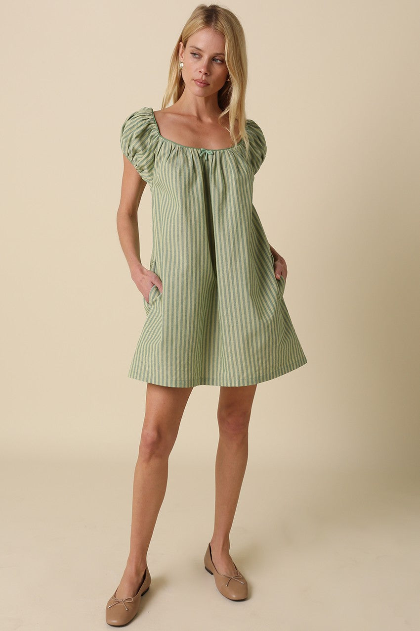Green Striped Babydoll Dress