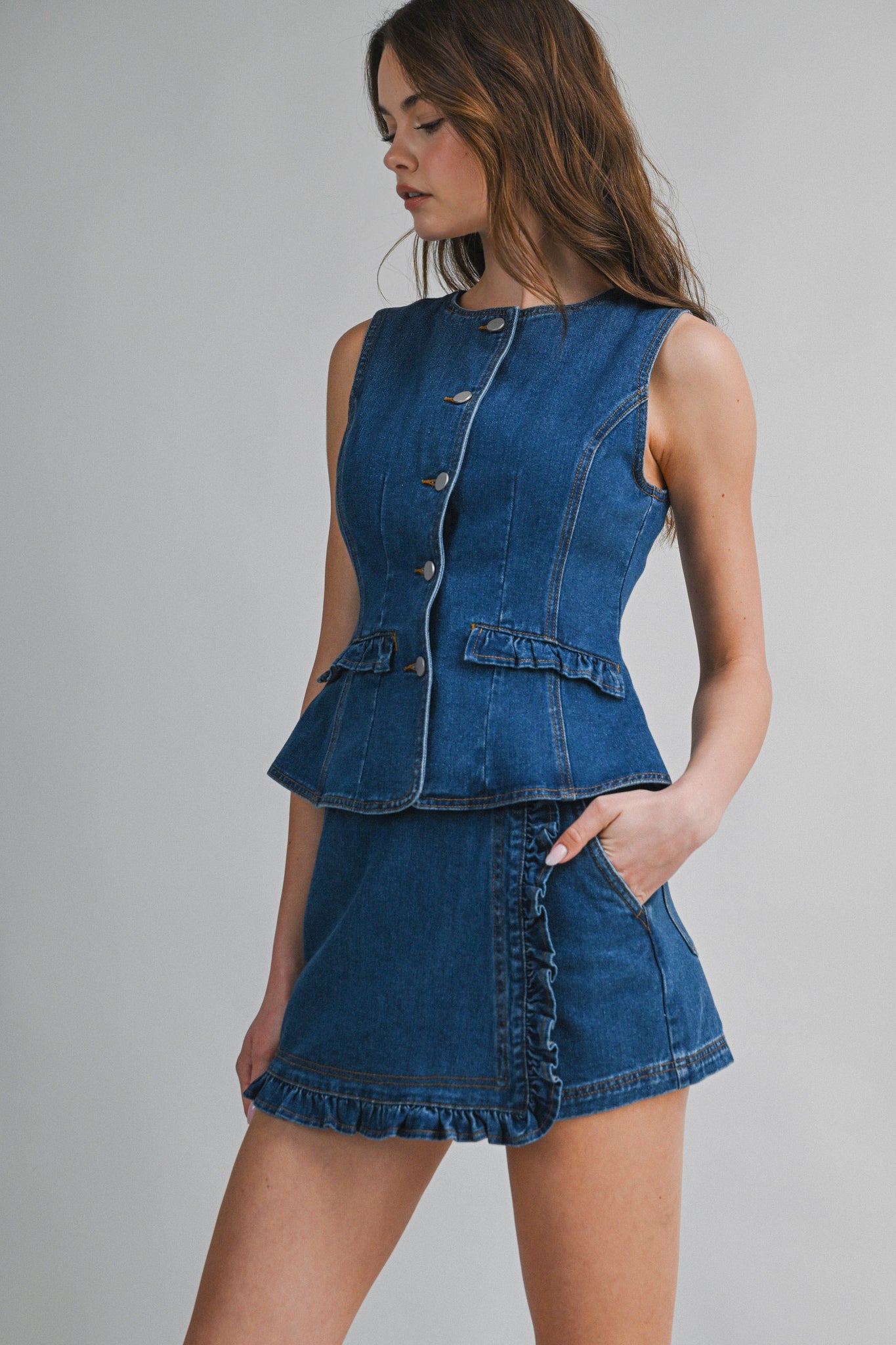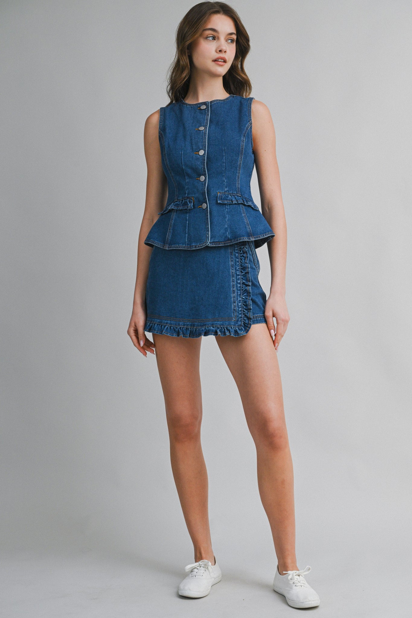 Denim Ruffle Trim Skort Set