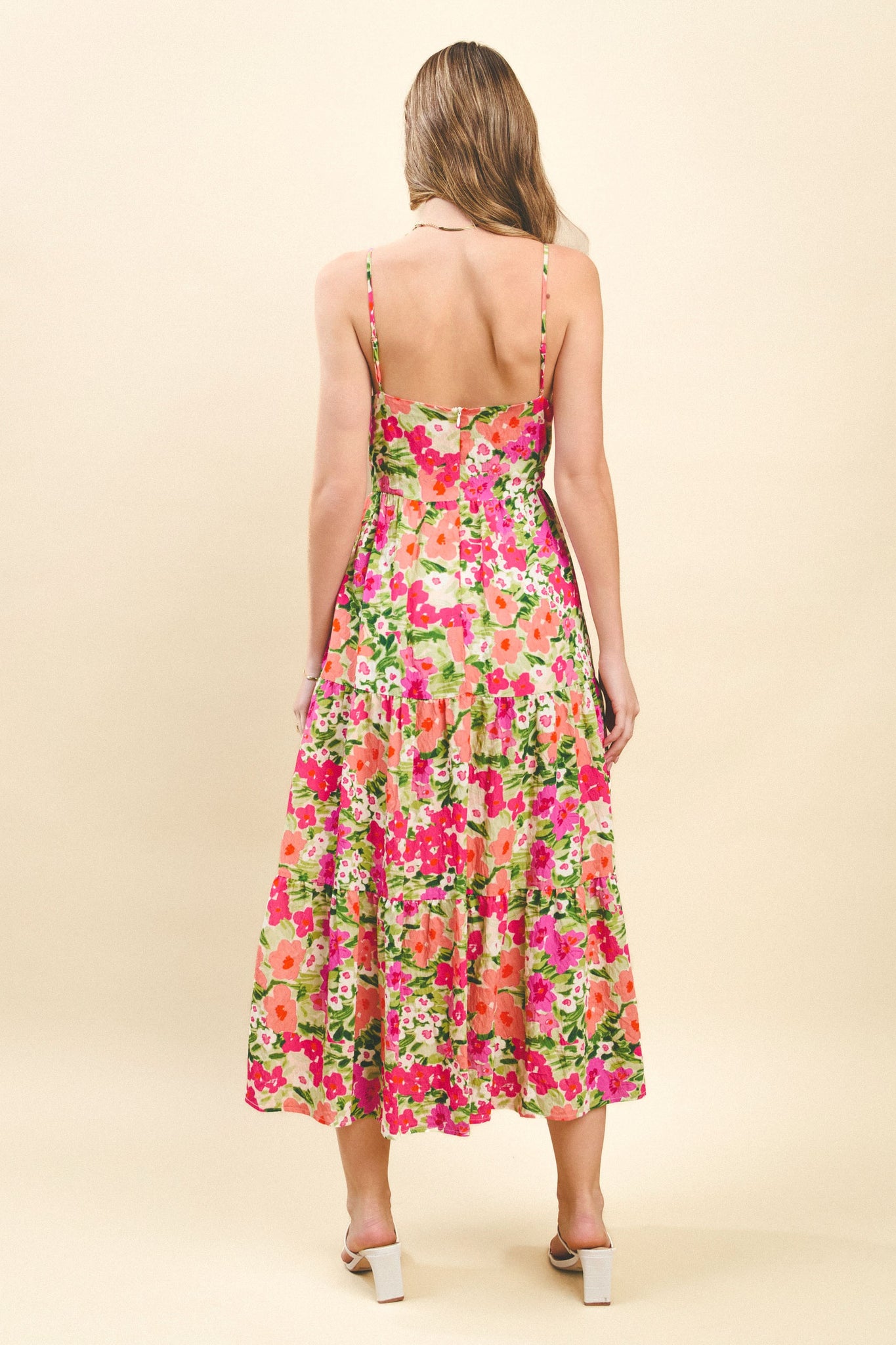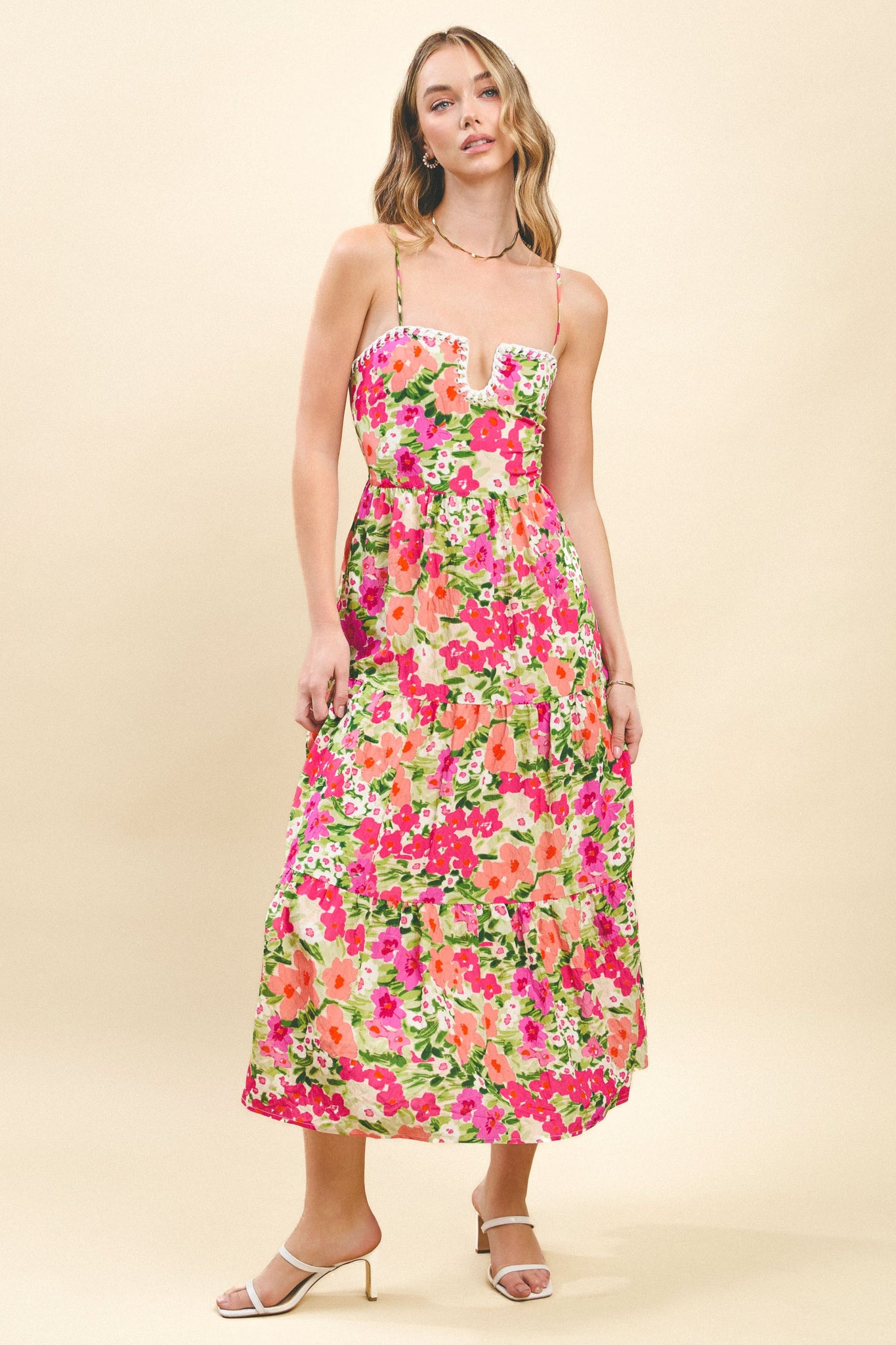 NEWEST ARRIVAL *PREORDER 4/1* Pink Floral Contrasting Stitch Midi Dress