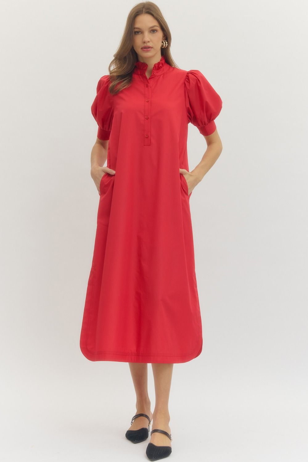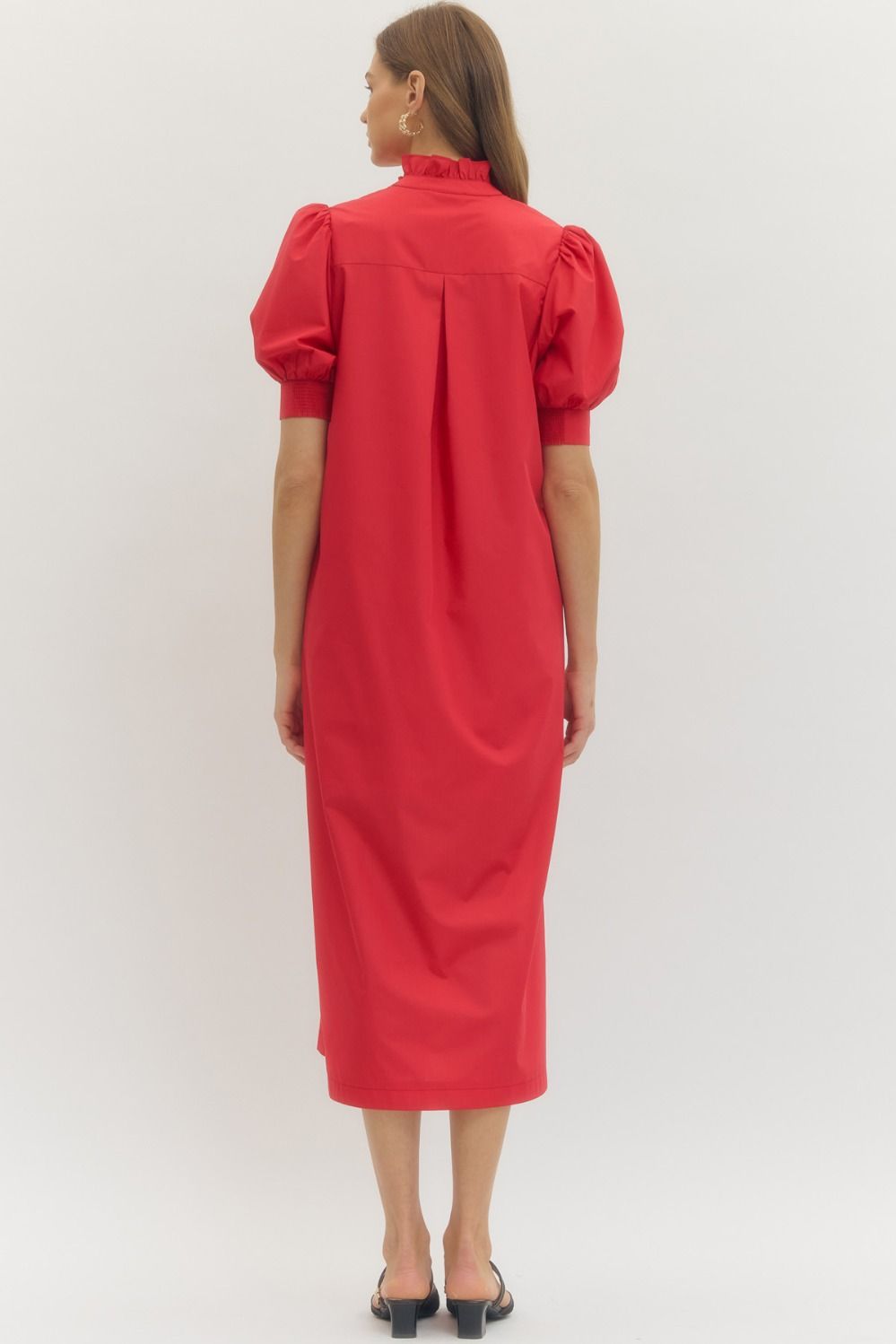 NEWEST ARRIVAL Red Ruffle Neck Midi Dress