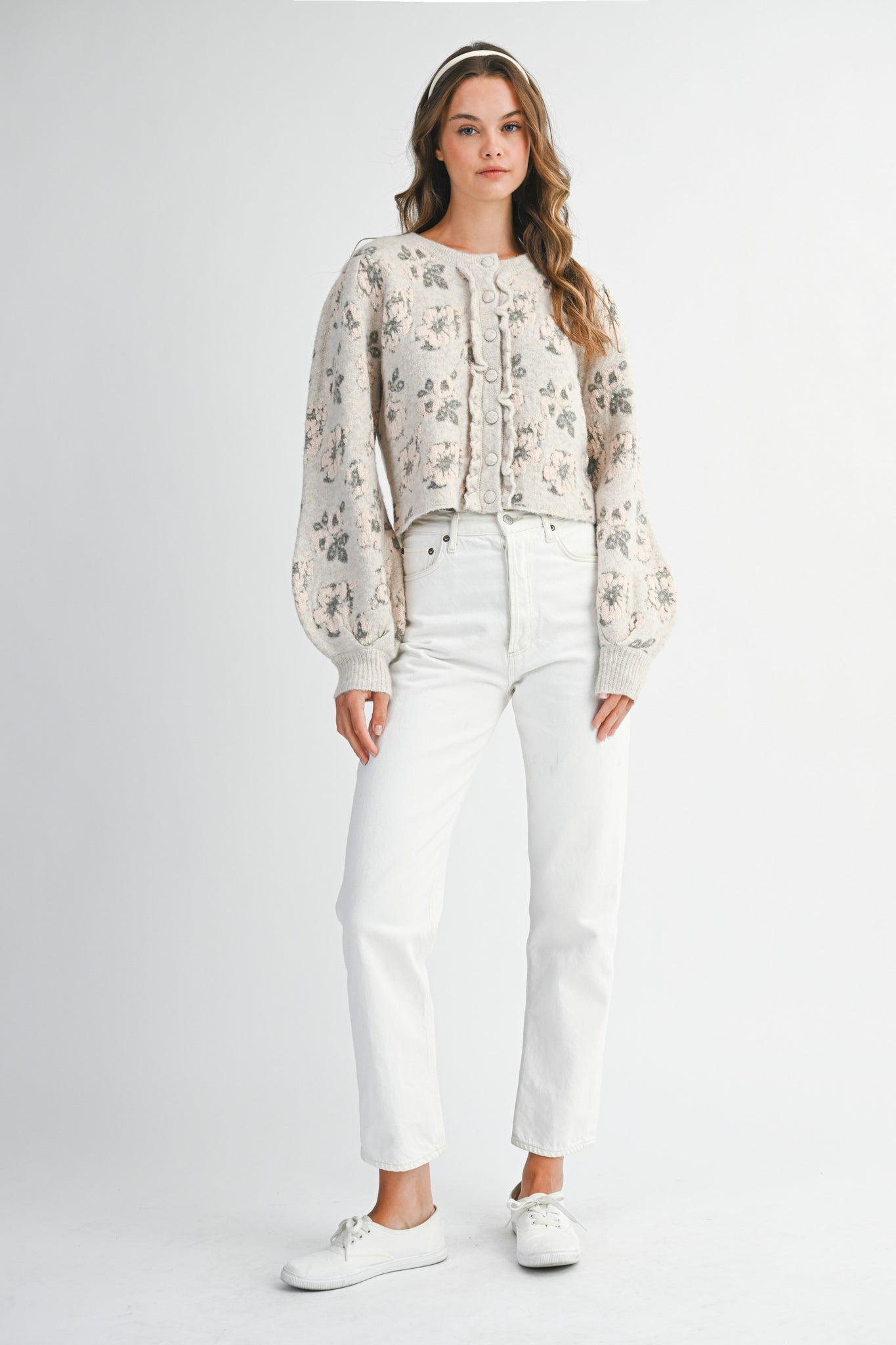 NEWEST ARRIVAL Taupe Jacquard Floral Cardigan Sweater