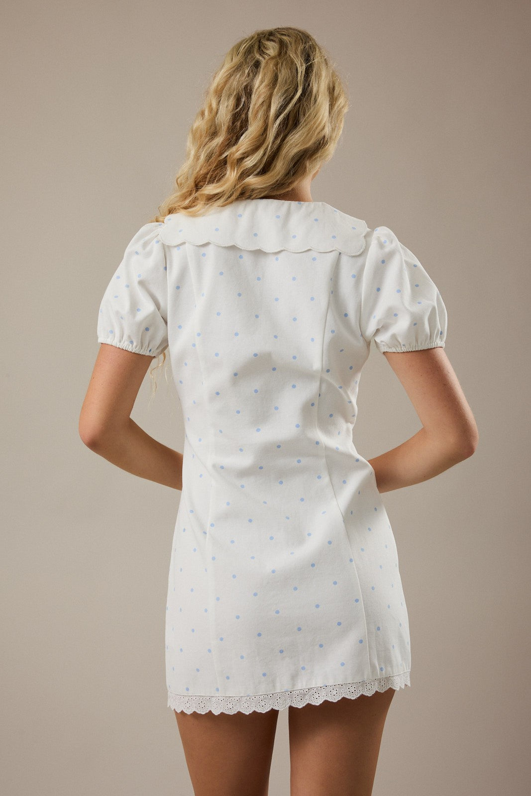 White/Blue Polka Dot Peter Pan Dress