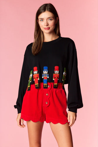 NEWEST ARRIVAL Red Nutcracker Sequin Embellished Short Sleeve Sweater