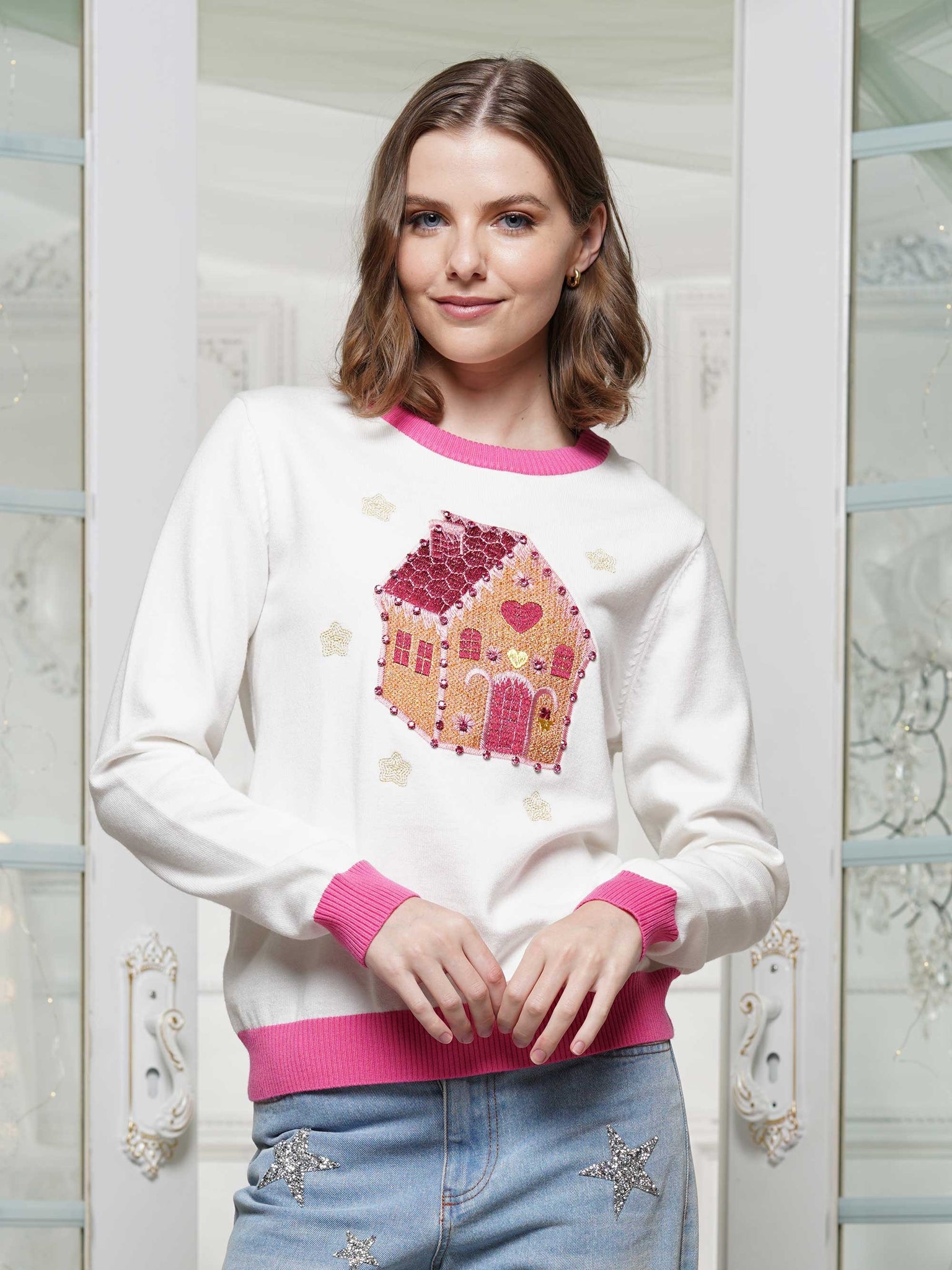 FINAL SALE Gingerbread House Embroidered Sweater