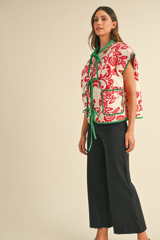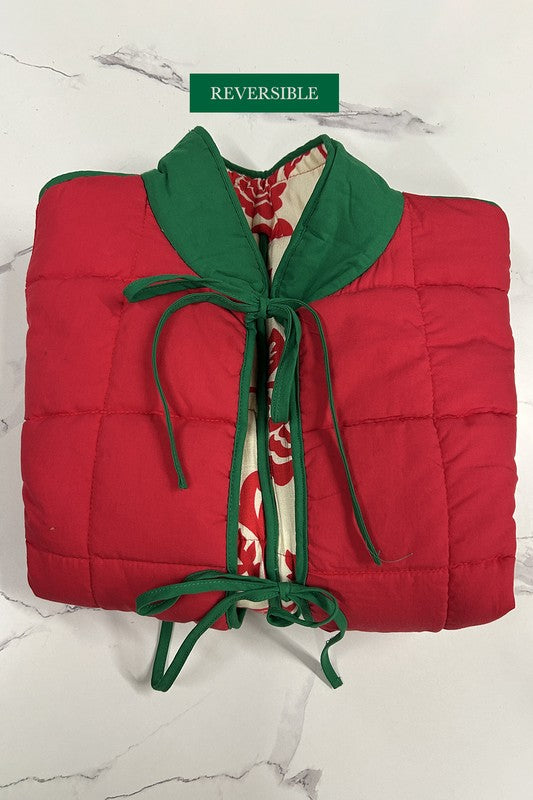 FINAL SALE Red/Green Printed Reversible Front Tie Vest
