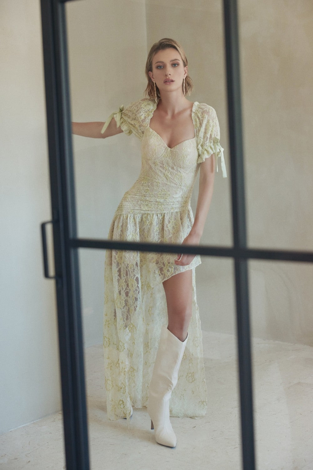 FINAL SALE Sage Lace Asymmetrical Maxi Dress