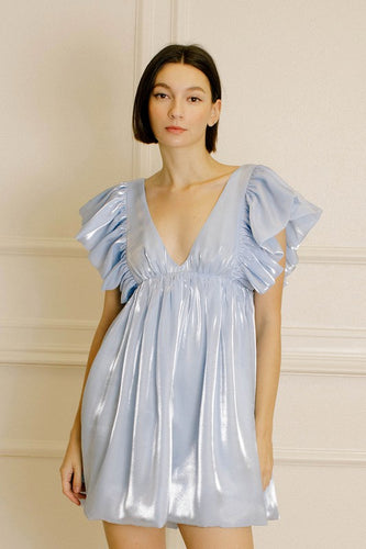 FINAL SALE Sky Blue Monochromatic Shiny Sheen Mini Dress